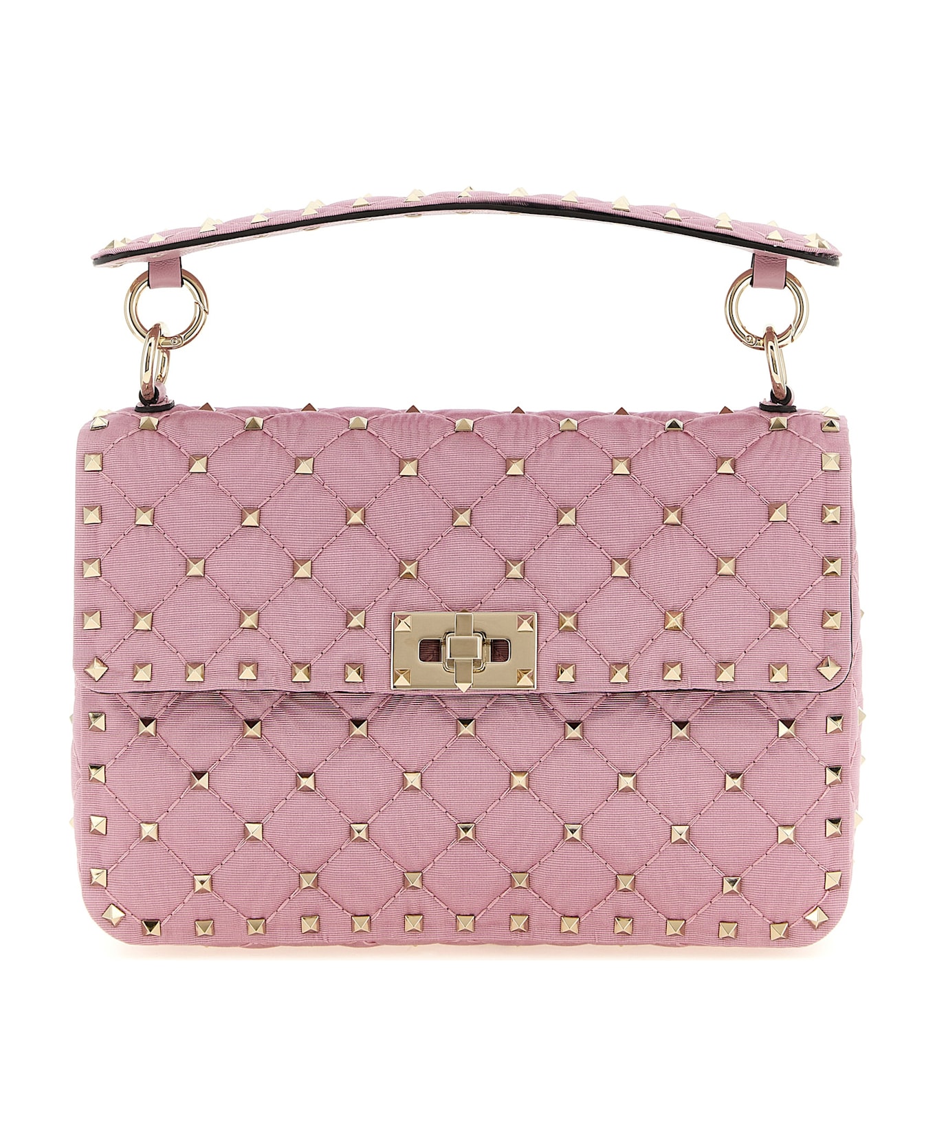 'Rockstud Spike' shoulder bag in quilted moiré fabric with all-over stud appliqué, flap closure with swivel, removable handle, removable chain shoulder strap. Composition: 100% viscose