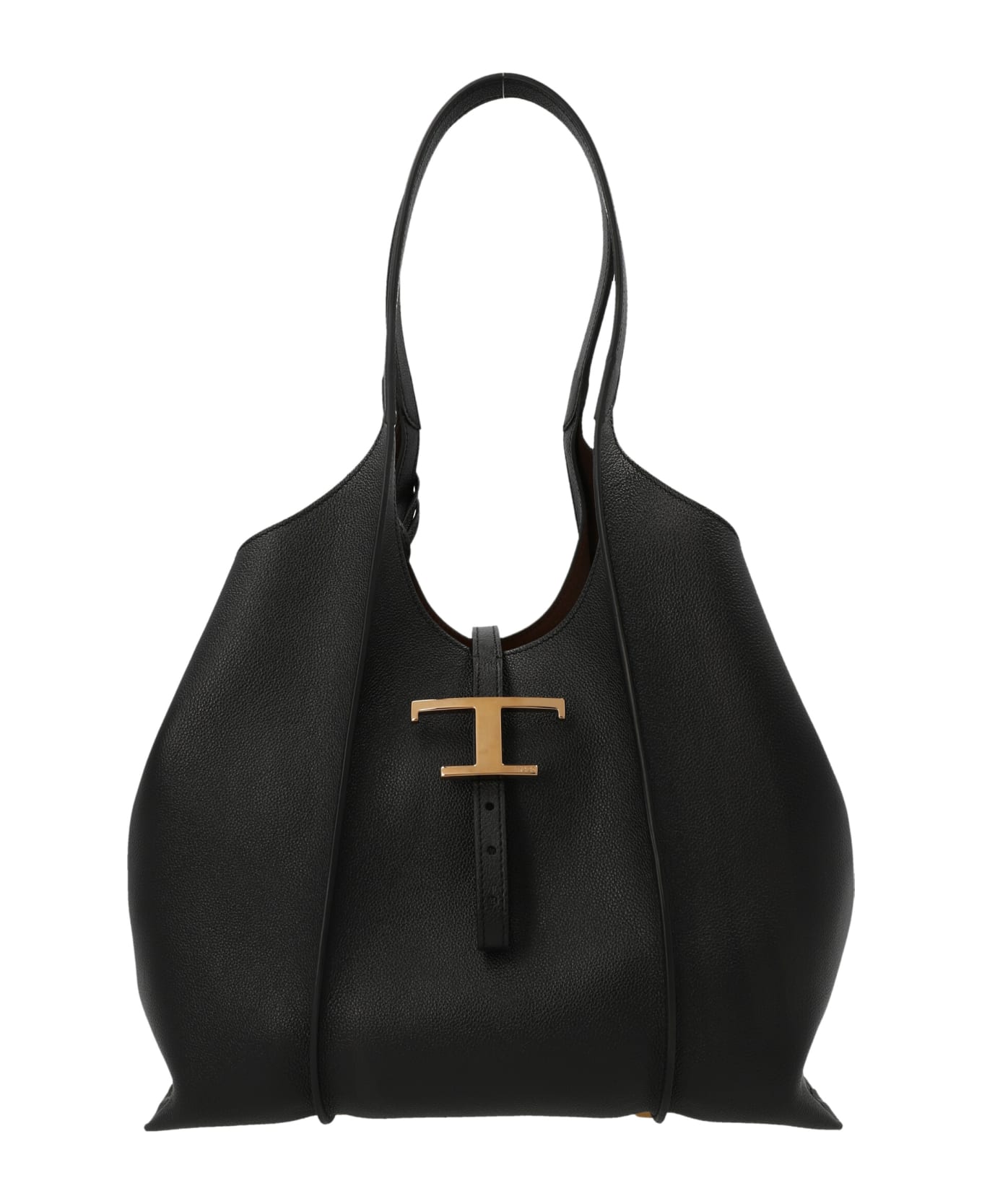 'recycled' Small Shopping Bag In Hammered Leather With Ribs, A Custom Metal T-pendant Accessory, Double Handles And A Large Inner Compartment With A Removable Bag. composition: 100% Leather