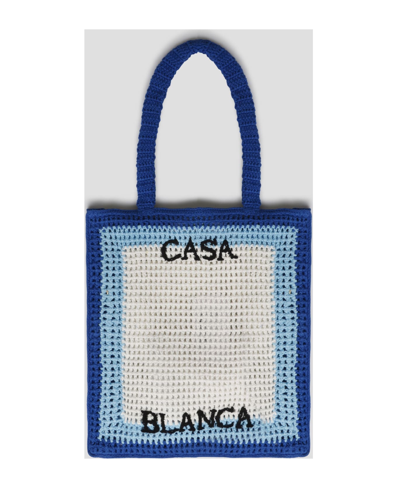 Casablanca cotton crochet tote bag, with contrasting logo embroidered on the front. - SS23