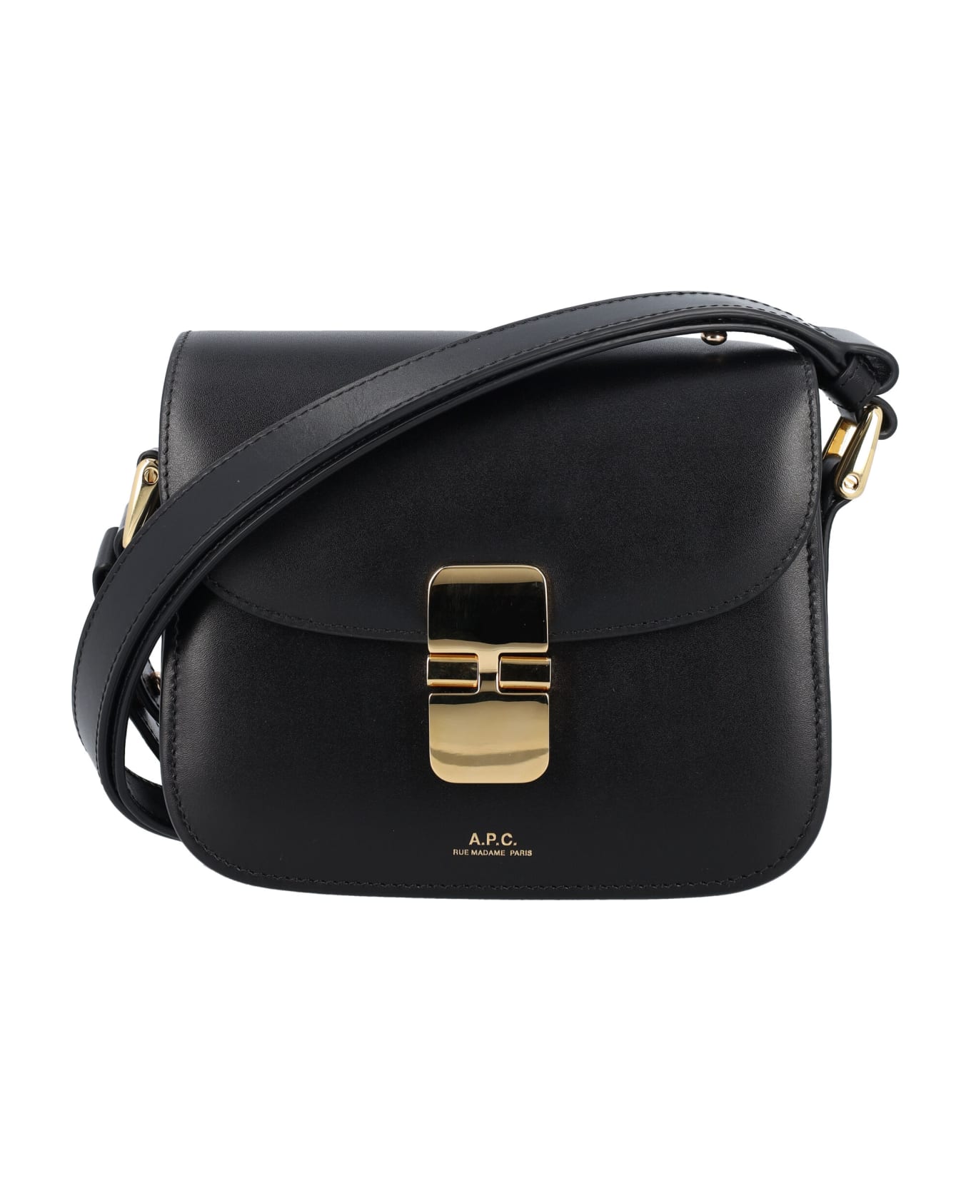 Smooth Leather Grace Mini Bag By A. p. c.. Featuring: Clasp Flap Closure Goldtone 'a. p. c. Rue Madame Paris' Logo Embossed On Front Lined Under Flap In Calfskin Suede Adjustable Shoulder Strap Large Compartment And Two Additional Compartments Goldtone Hardware Height: 14,5 Cm Width: 17,5 Cm Depth: 4 Cm