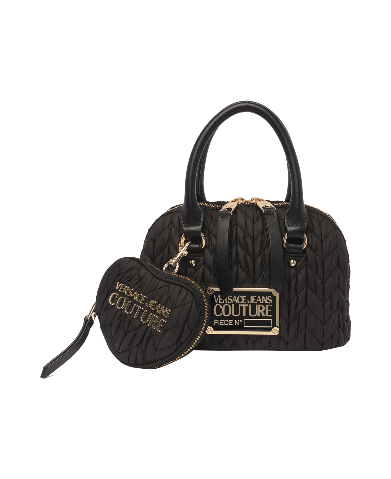 Versace Jeans Couture logo black hand bag, zip closure, inner zipped and open pocket, inner mini removable zipped pochette, 2 hand straps, removable and adaptable strap, external heart pochette Composition: 100% Polyester