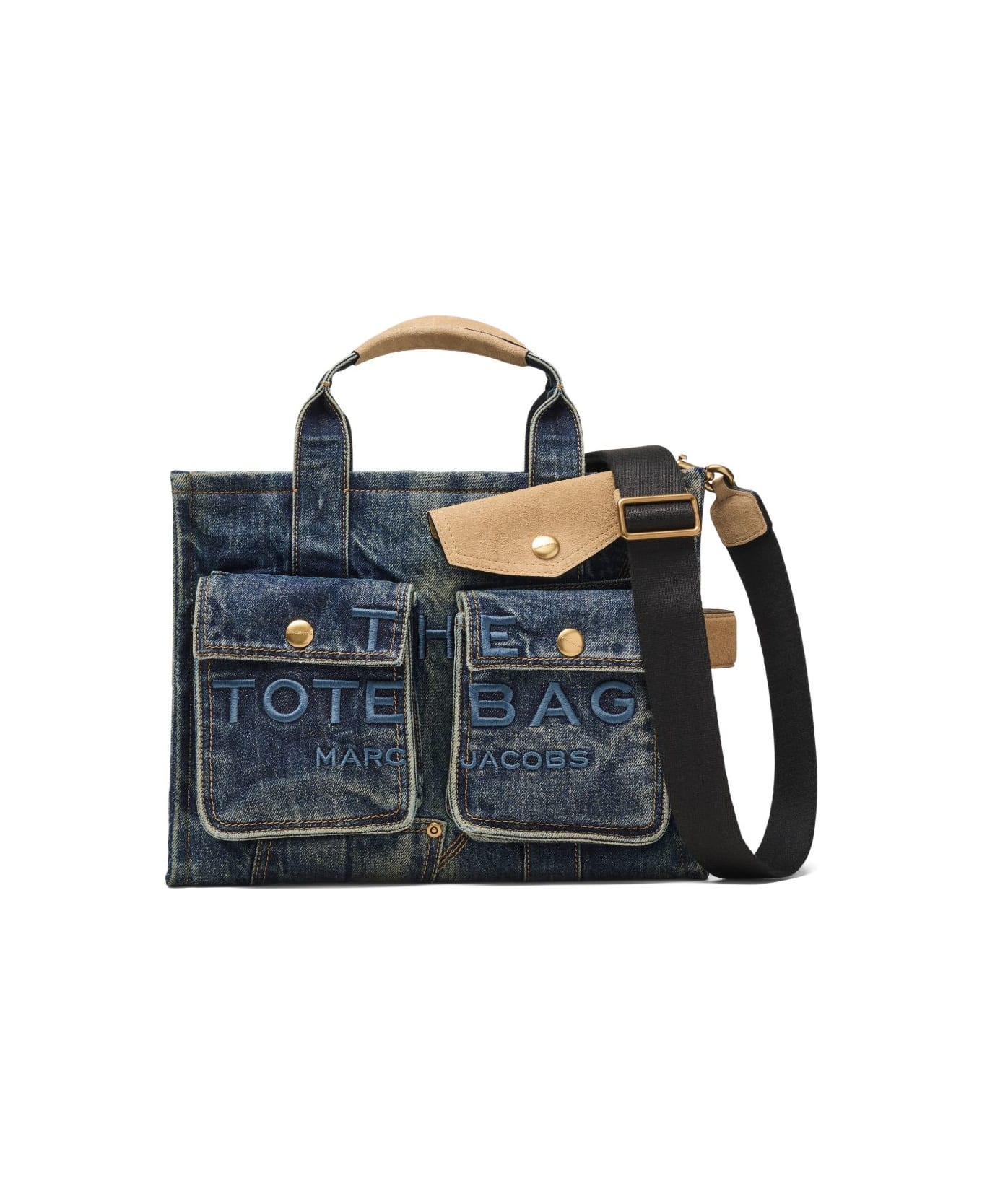 dark wash blue suede panel zip fastening top handles detachable shoulder strap front pockets