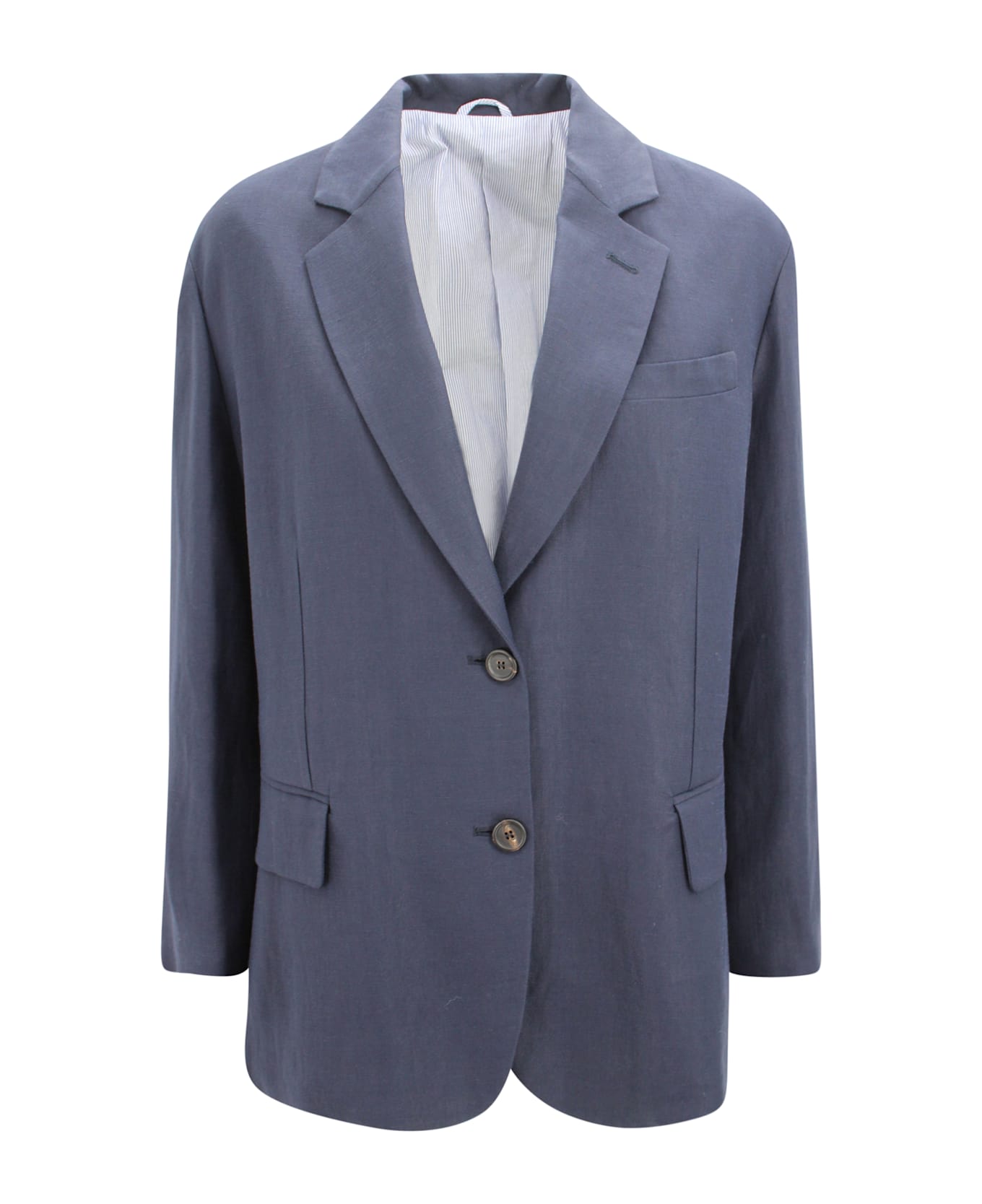 Classic lapels Front button closure Front flap pockets Long sleeves Buttoned hems