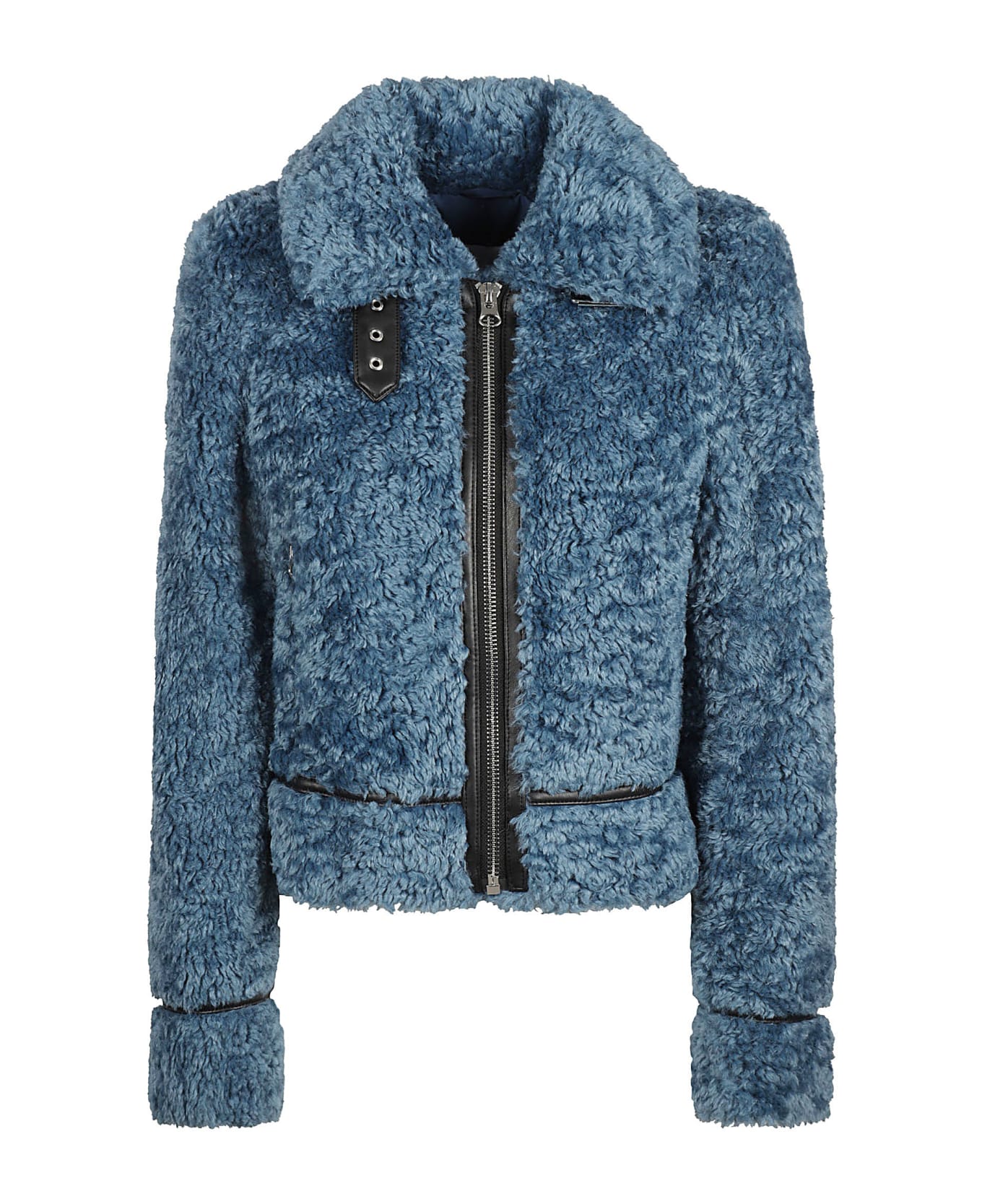 Nail model jacket Front closure and zip pockets Neck strap Faux leather motif on the bottom and on the cuffs Colour: light blue
