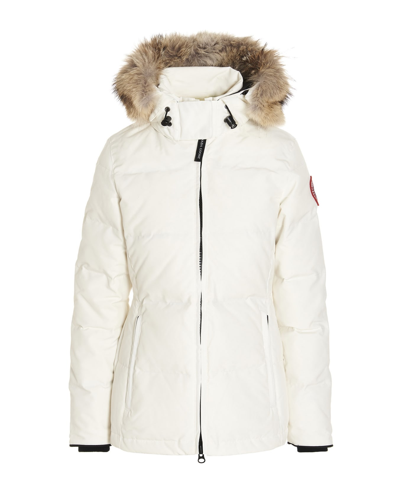 Chelsea' tech fabric parka with goose down padding, a zip closure, a removable hood, pockets, a removable fur collar, pockets, and long cuffed knit sleeves. Composition: