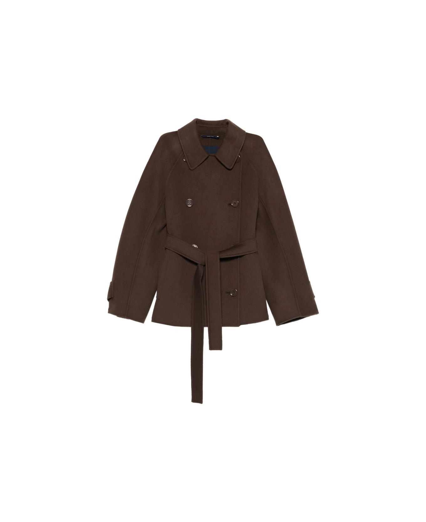 brown pointed collar button fastening belted double-breasted long sleeves