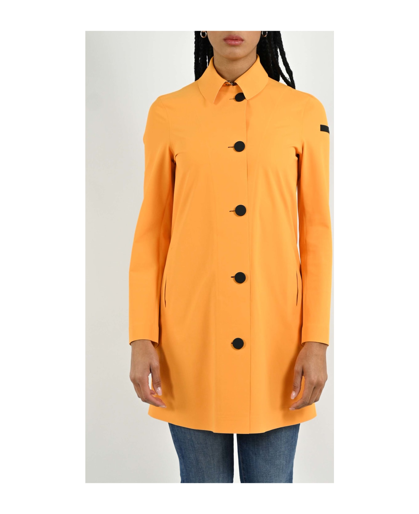 outerwear with shirt collar and large button closure. lightweight, breathable and waterproof fabric in a très chic way. it is a technical fabric with an opaque appearance, it is compact, soft and versatile. it is made with a 100% polyamide thread