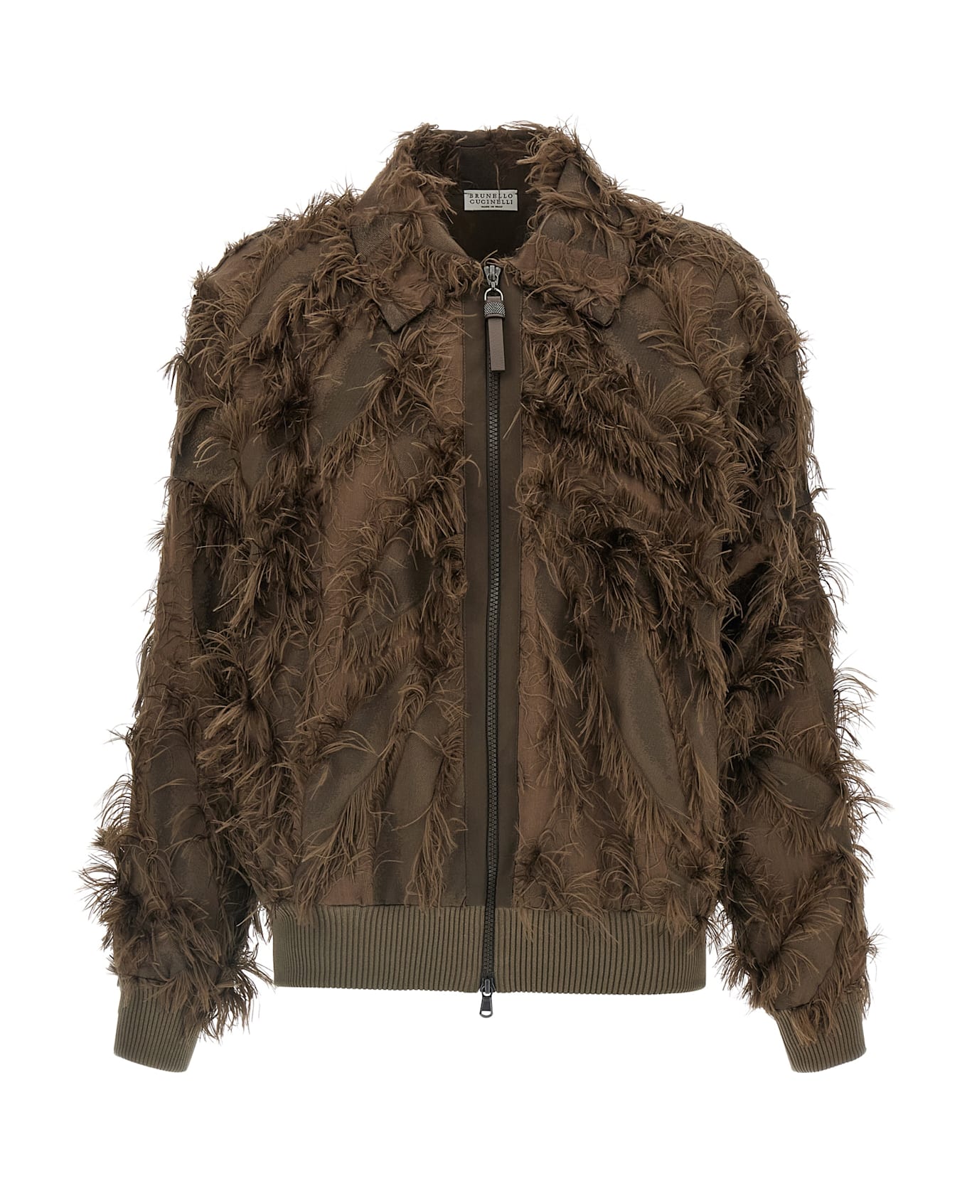 Bomber jacket in 'Dracaena' cotton and techno silk with ribbed stretch knit details, shirt collar, front zip closure with Monile 'Shiny Zipper Pull', pockets, long cuffed sleeves, silk blend lining. Composition: 67% polyester 22% cotton 11% si