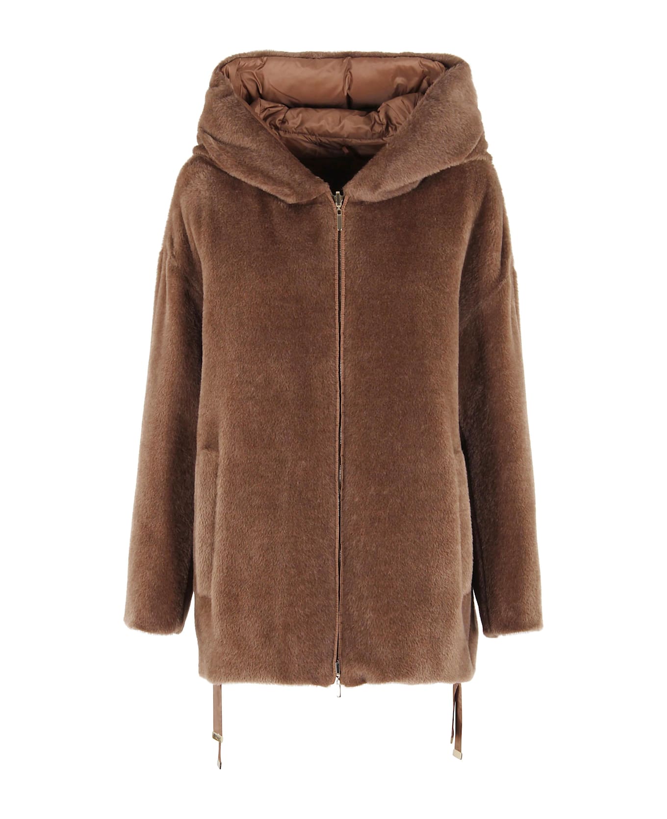 Olivia jacket -Max Mara The Cube -Color camel -Cap -Alpaca -Long sleeves -Side pockets -Drawstring at bottom -Center zipper closure
