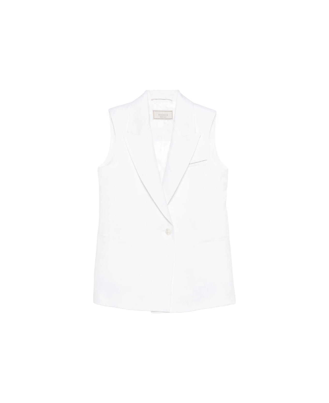 natural white lapel button fastening sleeveless welt pocket front flap pockets