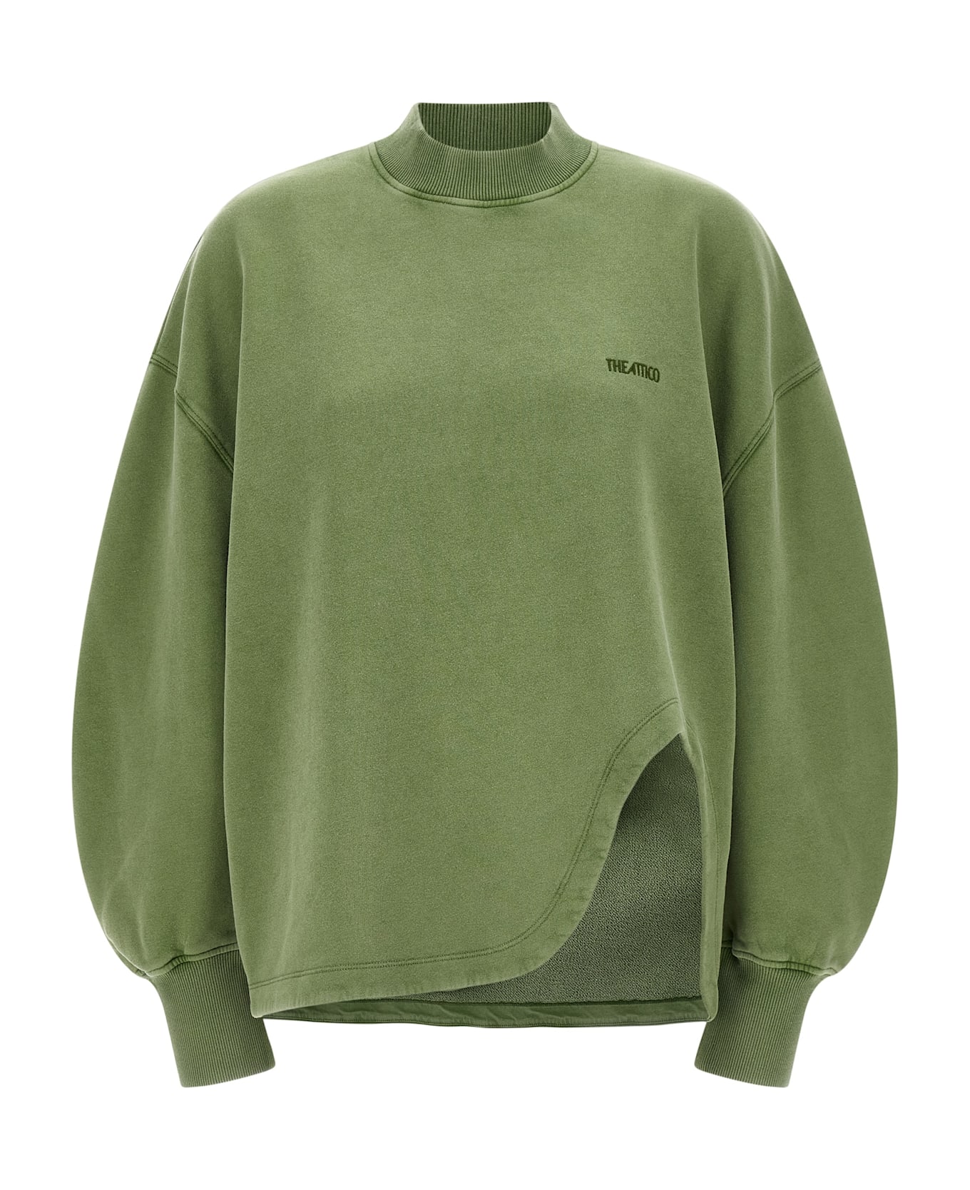 Vintage effect American fleece sweatshirt, tone-on-tone logo embroidery on the front, crew neck, long sleeves with cuffs and dropped shoulder, front shaped split, asymmetrical hem. Composition: 100% cotton