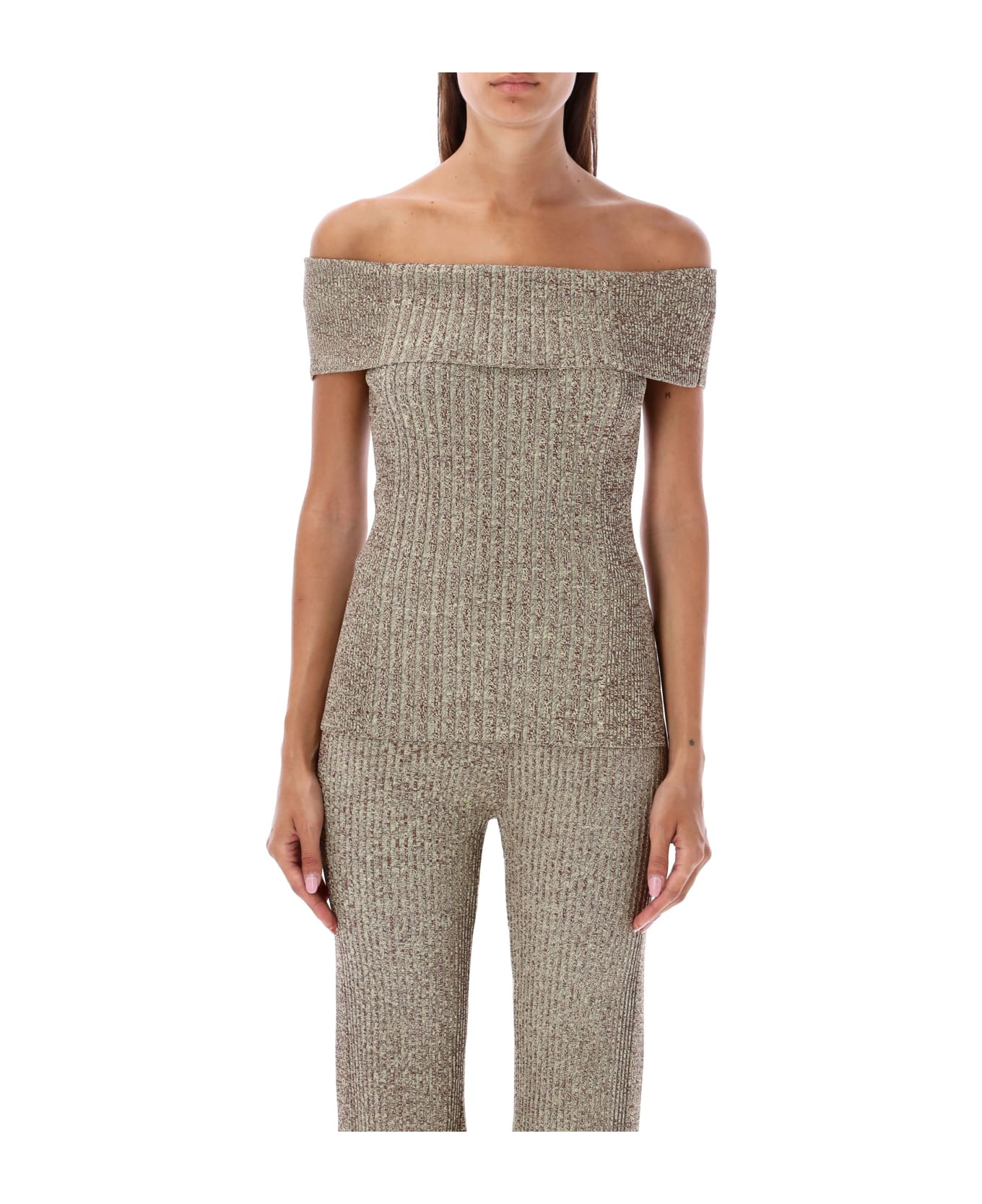 Melange Knit Off Shoulder Top By Ganni. Featuring: