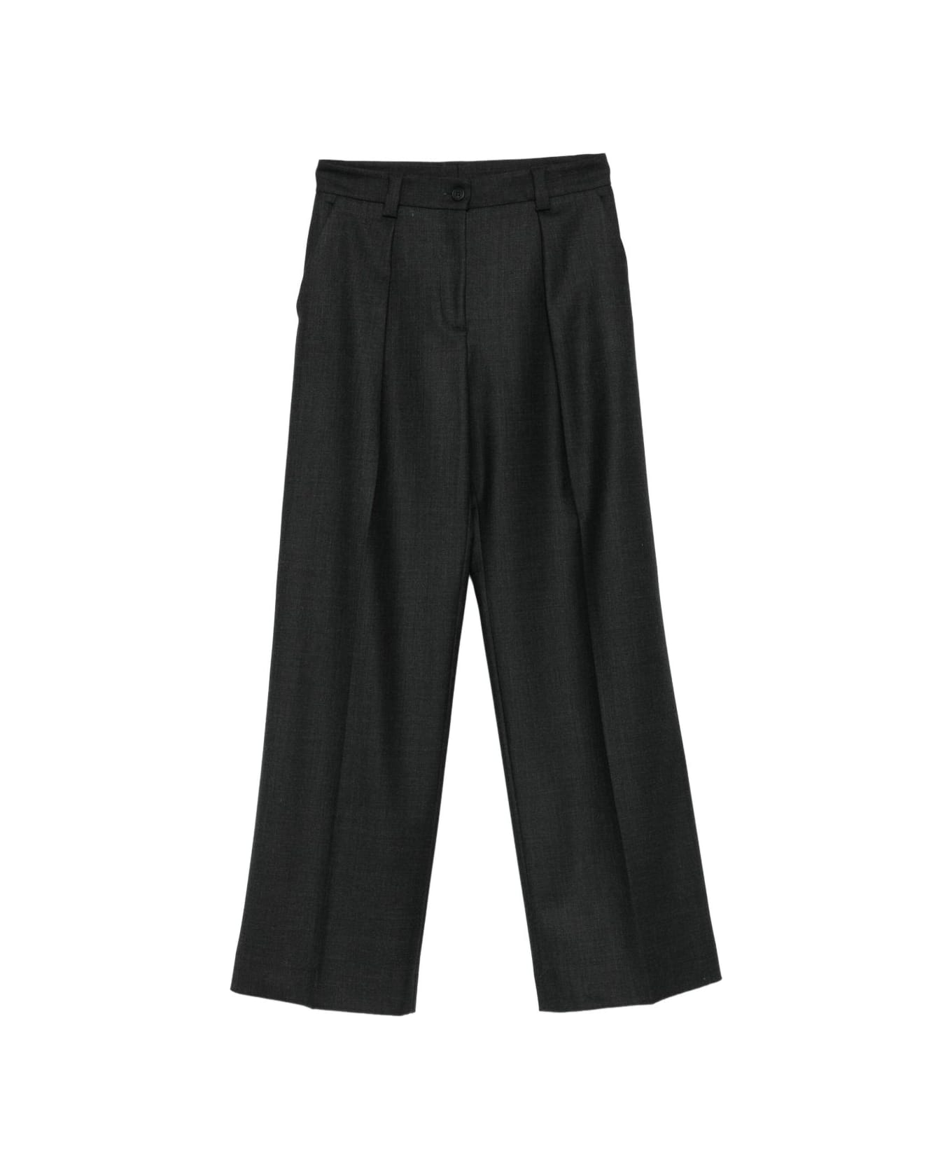 Tone-on-tone black stitching, belt loops, button and zip closure, front pleats, side pockets