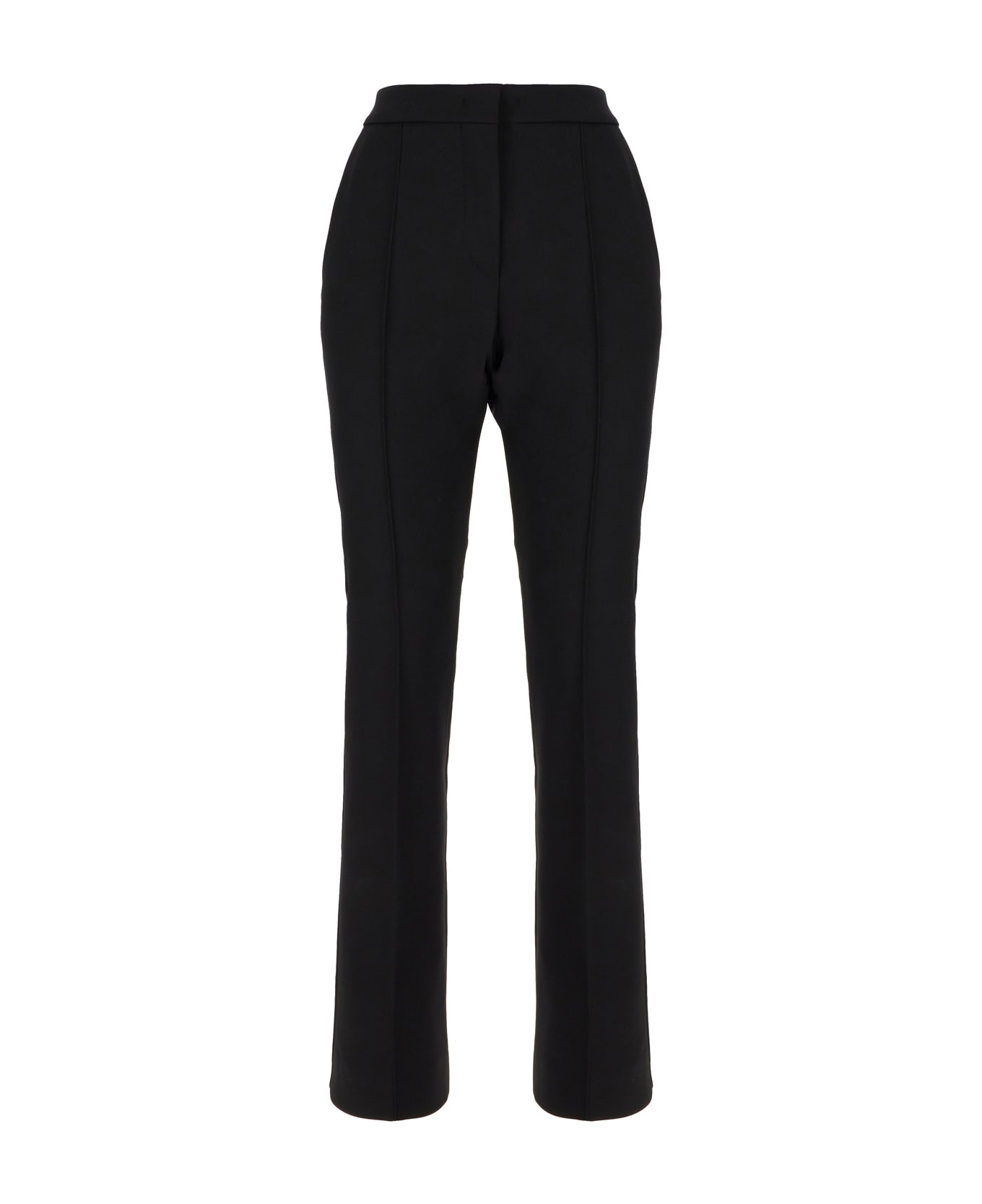 Pants realized in nylon blend characterized by central ironed pleats at the front. -Concealed zip, hook and button closure -Slant pockets and two slit pockets at the back