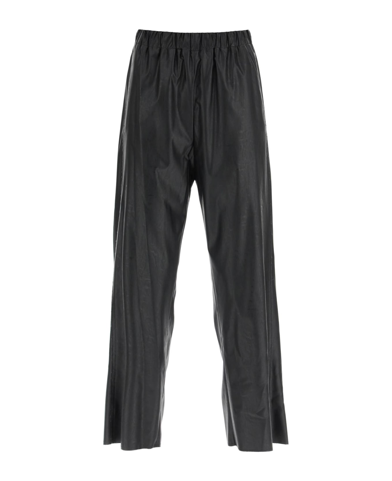 MM6 Maison Margiela faux leather pants featuring a straight cut with elasticated waistband, side inseam pockets and raw-cut details. Finished with the signature white seam at back of the waist. Relaxed fit. The model is 177 cm tall and wears a size IT 38. Composition: 100% PU