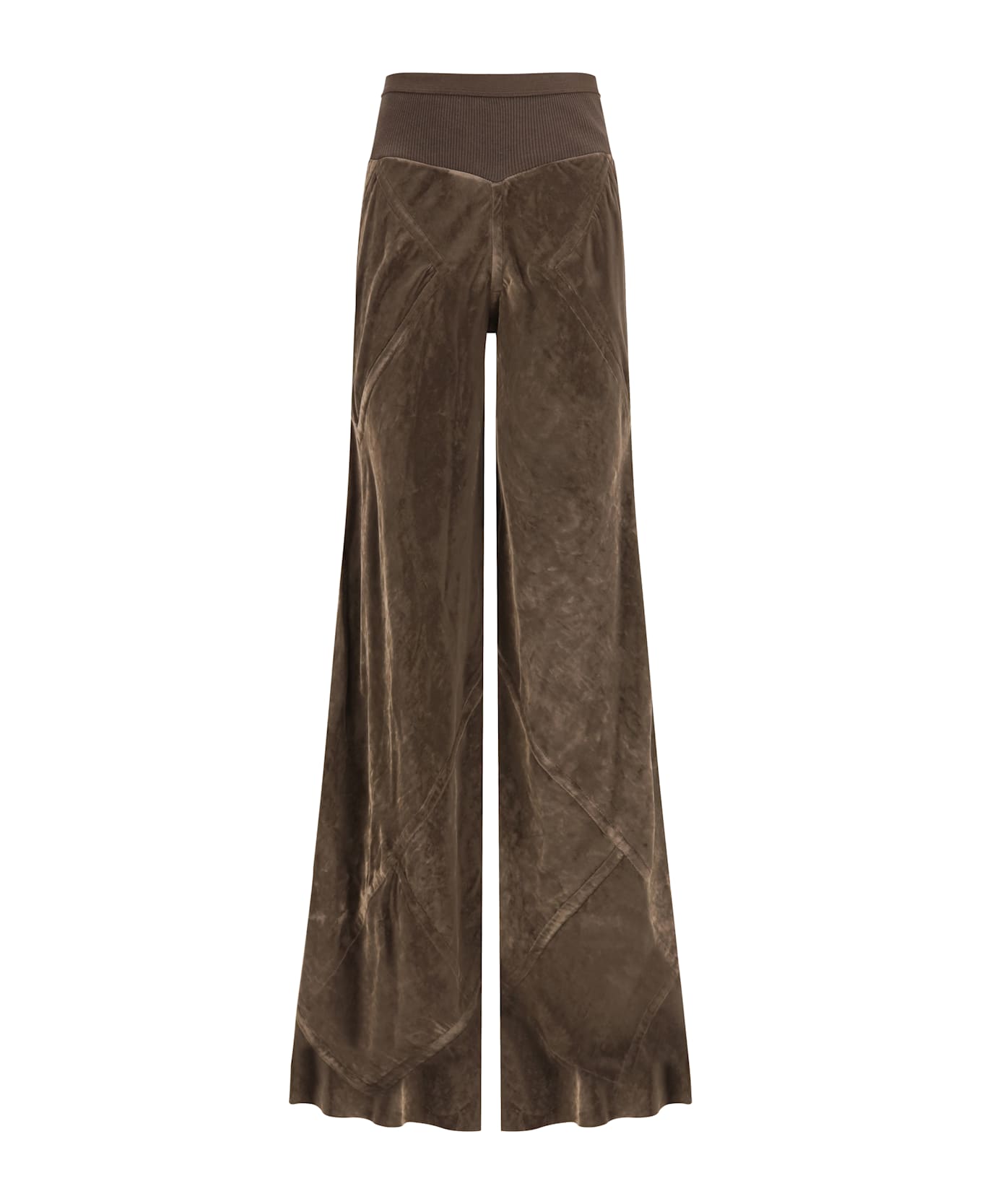 The velvet pants by rick owens combine comfort and essential style in a bold design. featuring a ribbed elastic waistband, they have a wide leg that gives fluidity of movement, perfect for a sophisticated, contemporary look.