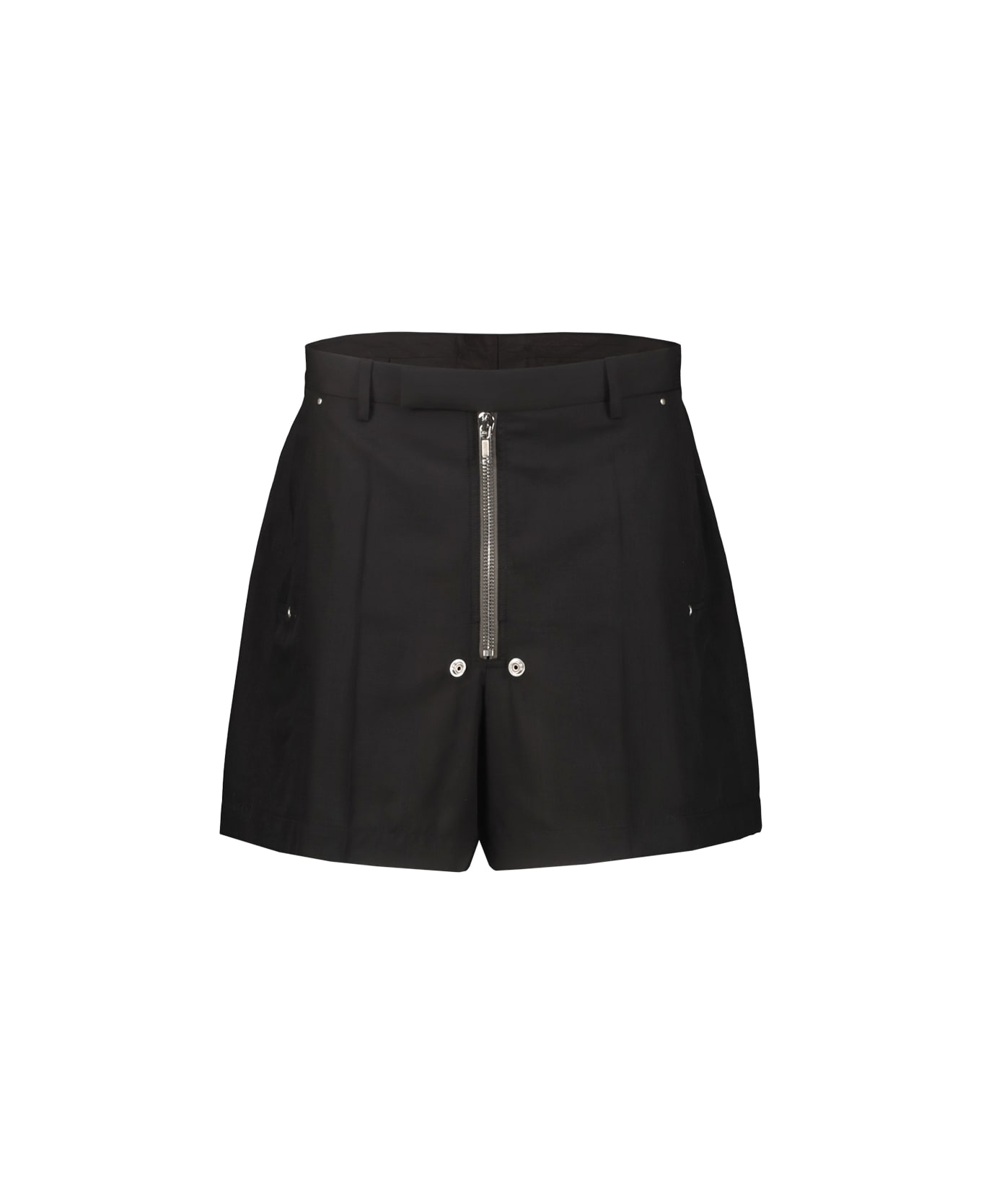 Rick Owens tailored shorts in lightweight wool, exposed zip fastening, side pockets with metal rivet detail, back welt pockets, belt loops. gtin code: RP01F6306 WG