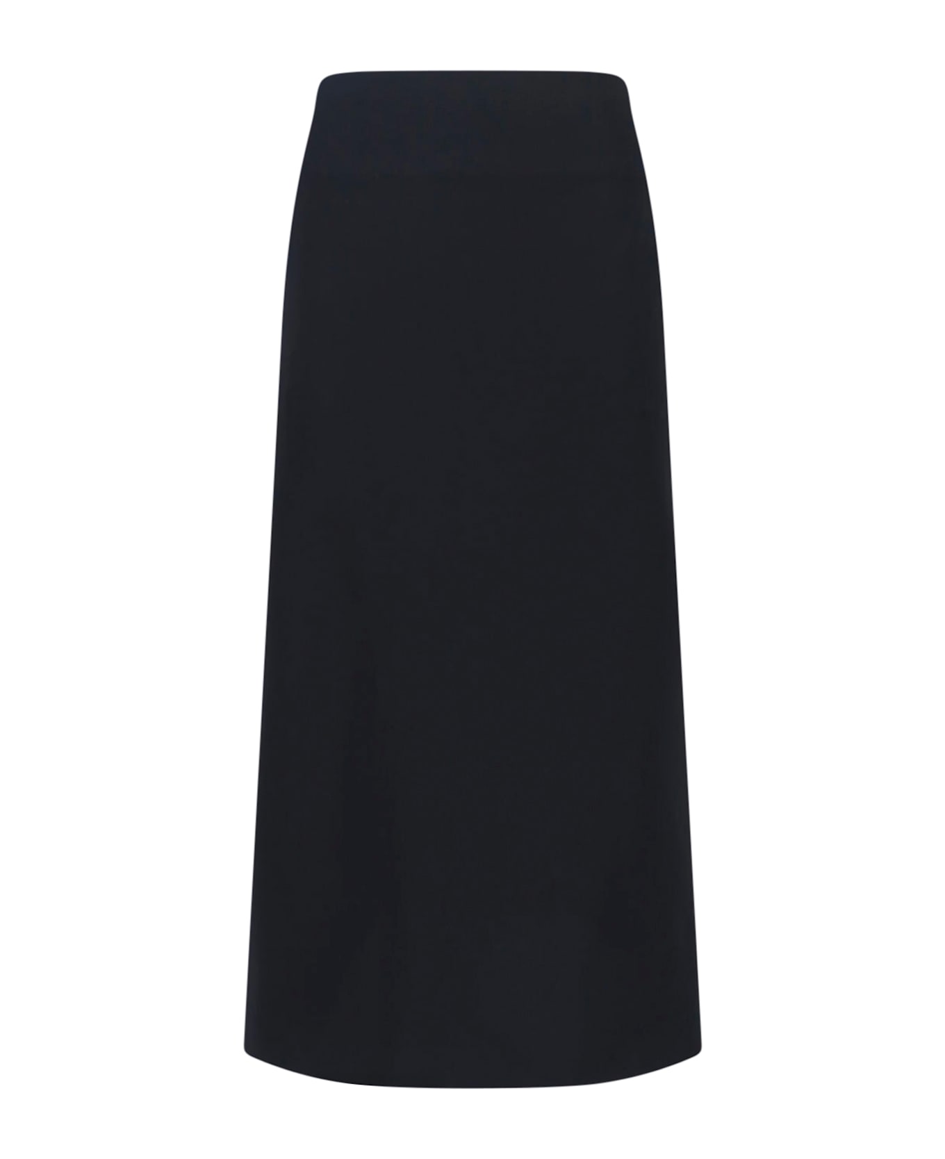 Jil Sander midi skirt in black viscose blend with mid waist, back zip closure, back slit, straight hem. Composition: 70% Viscose, 21% Polyamide, 9% Elastane