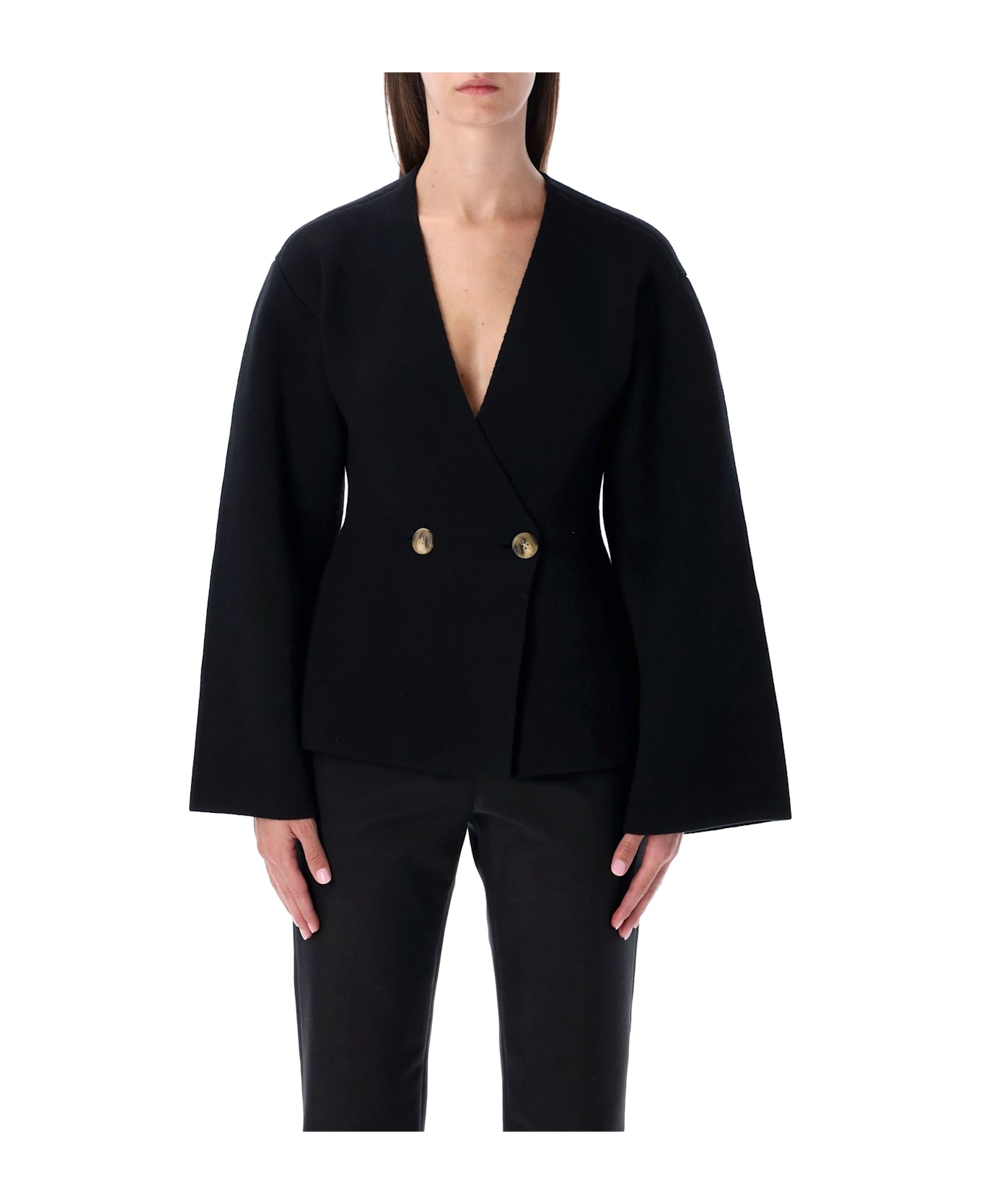 The Tinley Cardigan By By Malene Birger Redefines Modern Tailoring With Its Structured Yet Relaxed Silhouette. Crafted From A Refined Wool Blend, This Versatile Piece Features A Deep V-neckline And A Double-breasted Front Buttons. The Dropped Shoulders And Wide Long Sleeves Add A Contemporary Twist, While The Regular Fit Ensures Effortless Wearability. Deep V-neckline Double-breasted Front With Button Closure Long Wide Sleeves With Dropped Shoulders Regular Fit For Versatile Styling Model Is 1,70 M And Wears Size S