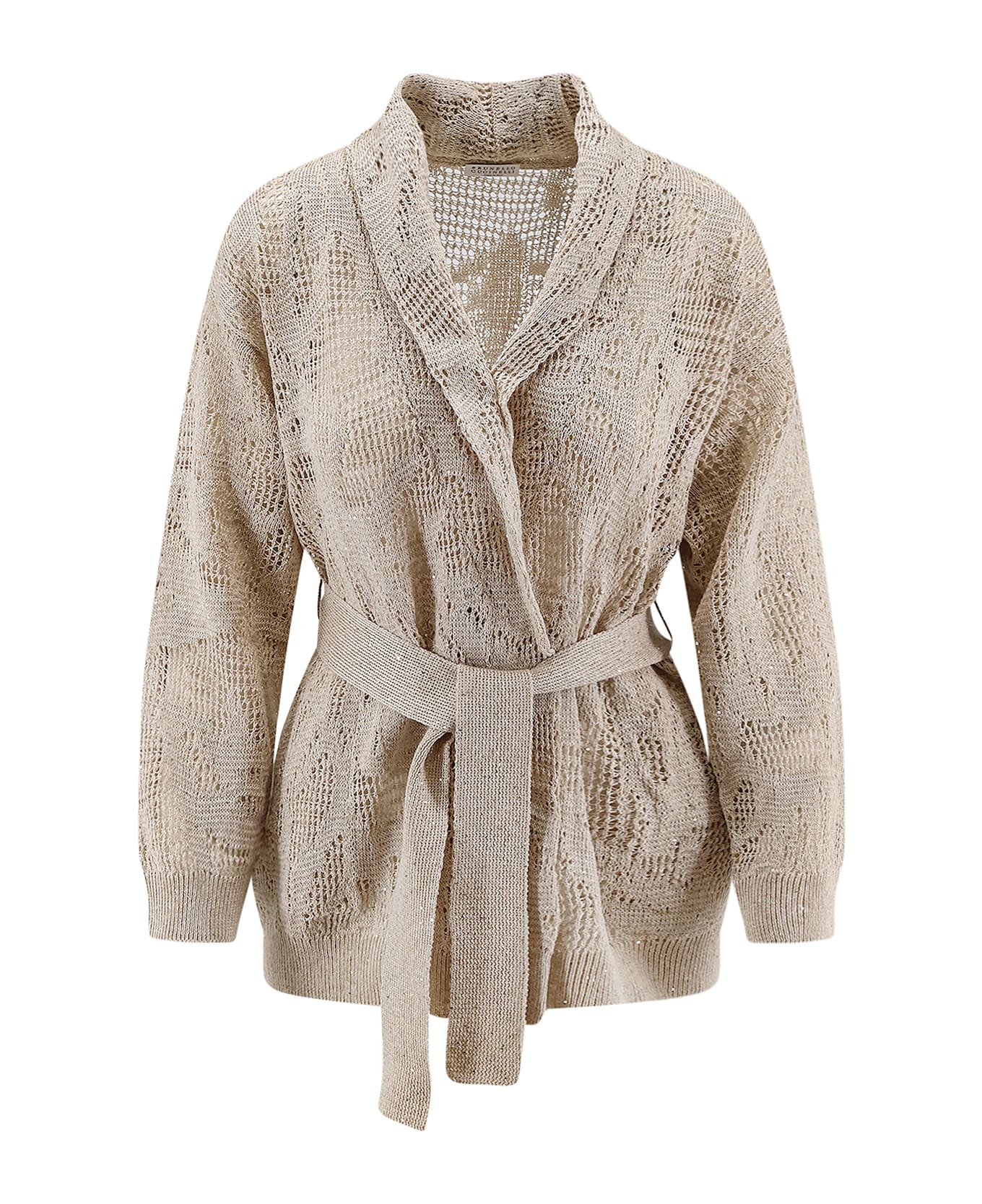 No Closure Belt closure Shawl lapel Long sleeves All-over sequin embroidery Side welt pockets Made in Italy 94% linen, 6% cotton SKU: MDT771006C8925