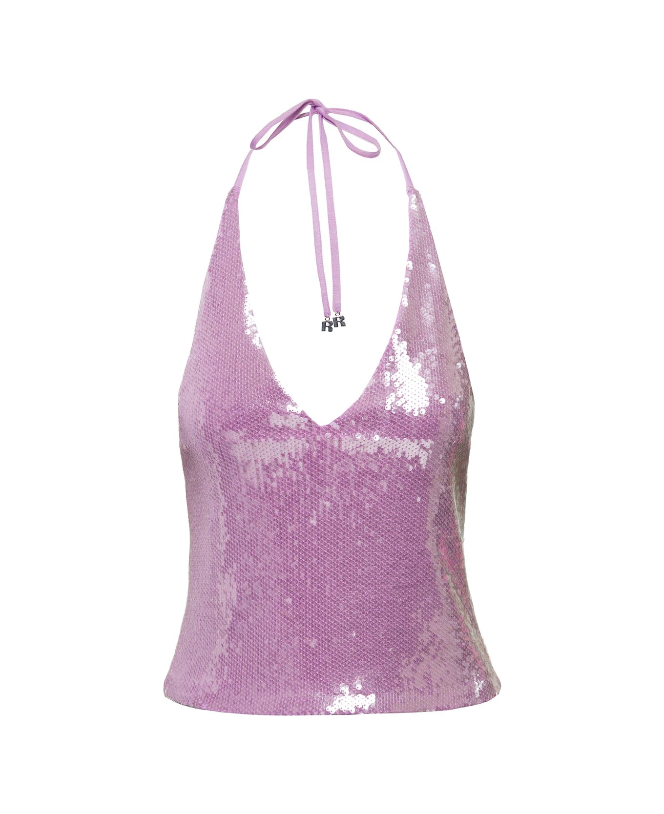 Top Halterneck Adjustable lace fastening with logo charm All-over sequin embellishment Straight hem Pink Polyester Regular fit