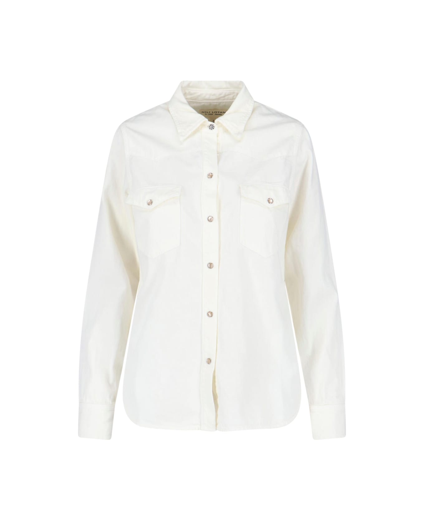 Nili Lotan 'Travis' cream cotton shirt with classic collar, long maiches, front button closure, two front button flap pockets, button cuffs, curved hem. Composition: 100% Cotton