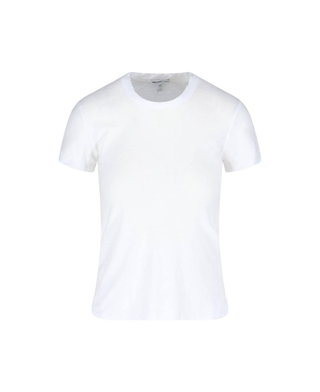 Classic James Perse white cotton crew neck t-shirt with short sleeves, straight hem.