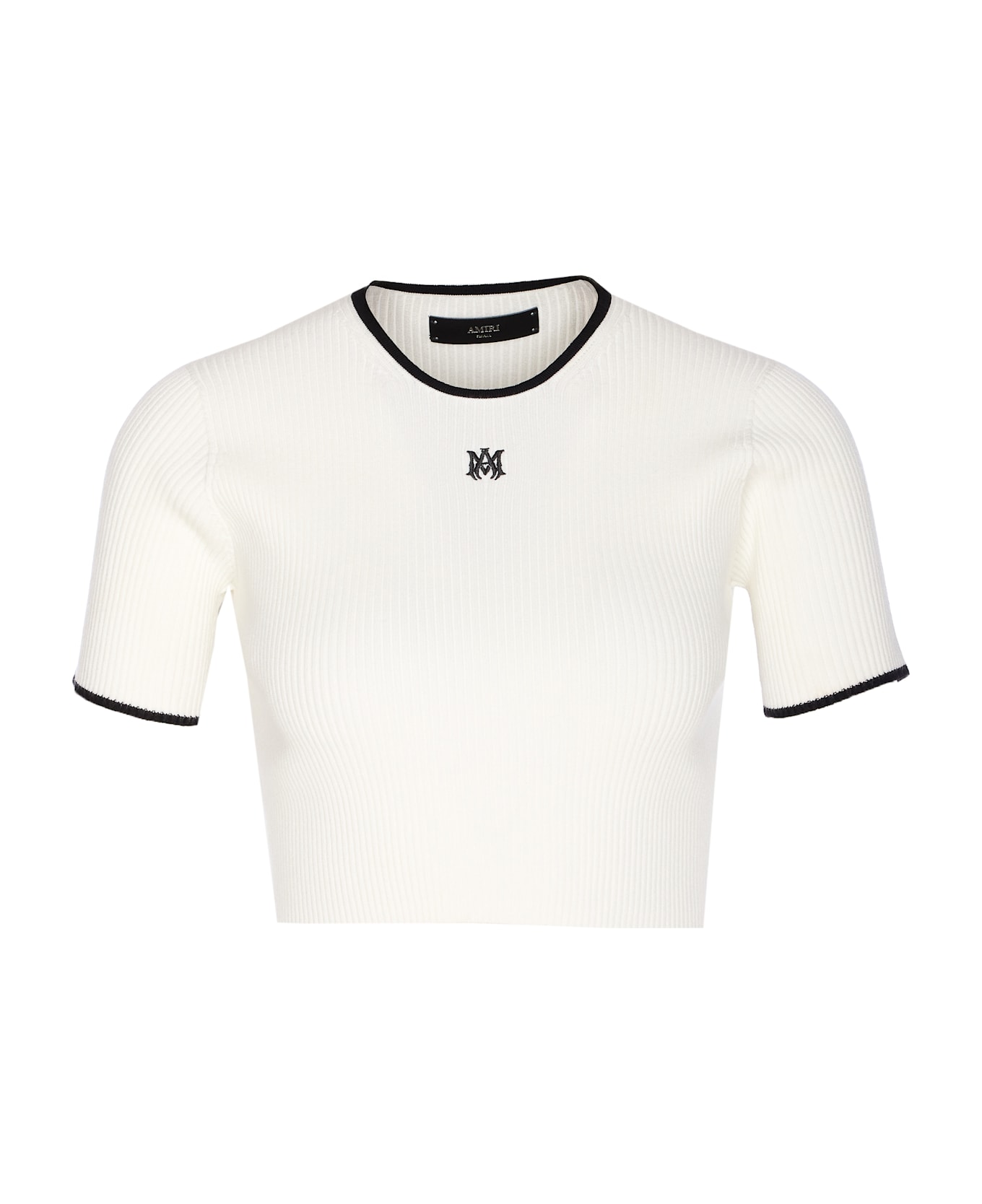 Amiri white My Baby t-shirt, crewneck, embrodiered MA logo on the front, crop model