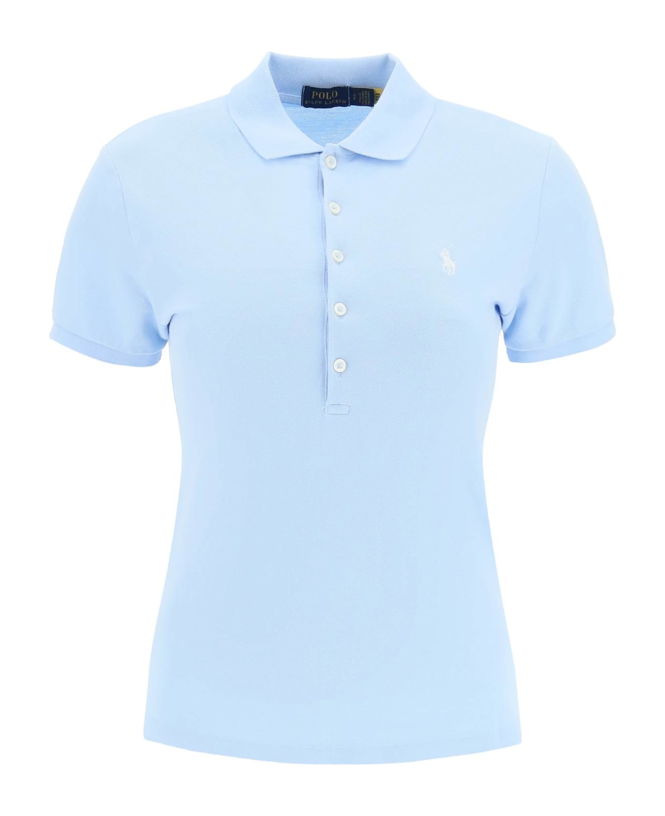 Polo Ralph Lauren short-sleeved polo shirt in stretch cotton piqué, detailed with contrasting embroidered logo on the chest. Ribbed collar and cuffs, five-button placket, small side vents. Slim fit. The model is 177 cm tall and wears a size S.