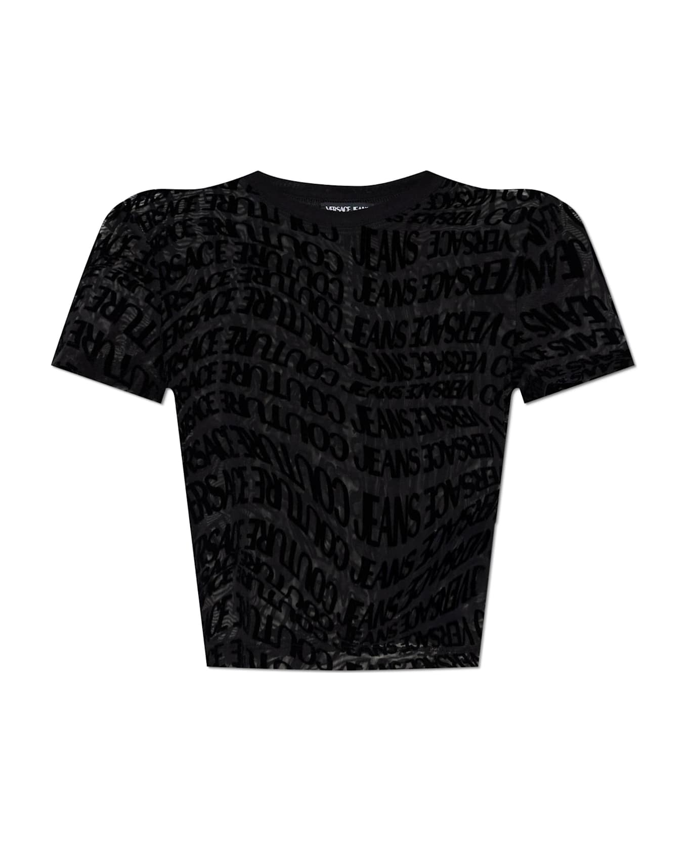 This T-shirt with a Velvet Finish Logo from Versace Jeans Couture embodies a harmonious fusion of high-fashion artistry and contemporary street style. Crafted from a silky, sheer black mesh, it offers a daring, modern silhouette that lightly contours the body for an effortlessly sophisticated look. The iconic VERSACE JEANS COUTURE lettering applied in sumptuous, velvety flock print graces the entire fabric in multiple directions, creating a dynamic and exclusive pattern. Distinctive for its soft, elevated texture, this tee is a testament to the label's innovative approach, seamlessly blending classic tailoring with a bold, urban sensibility. The short sleeves and standard length make it a versatile piece, perfect for statement ensembles both day and night. Dlaczego warto kupi ten produkt? Premium, lightweight mesh fabric for modern styling Signature flocked logo pattern for a unique, tactile finish Flattering, gently fitted cut enhances the silhouette Unmistakable designer heritage by Versace Jeans Couture Perfect harmony of luxury high-fashion and streetwear appeal
