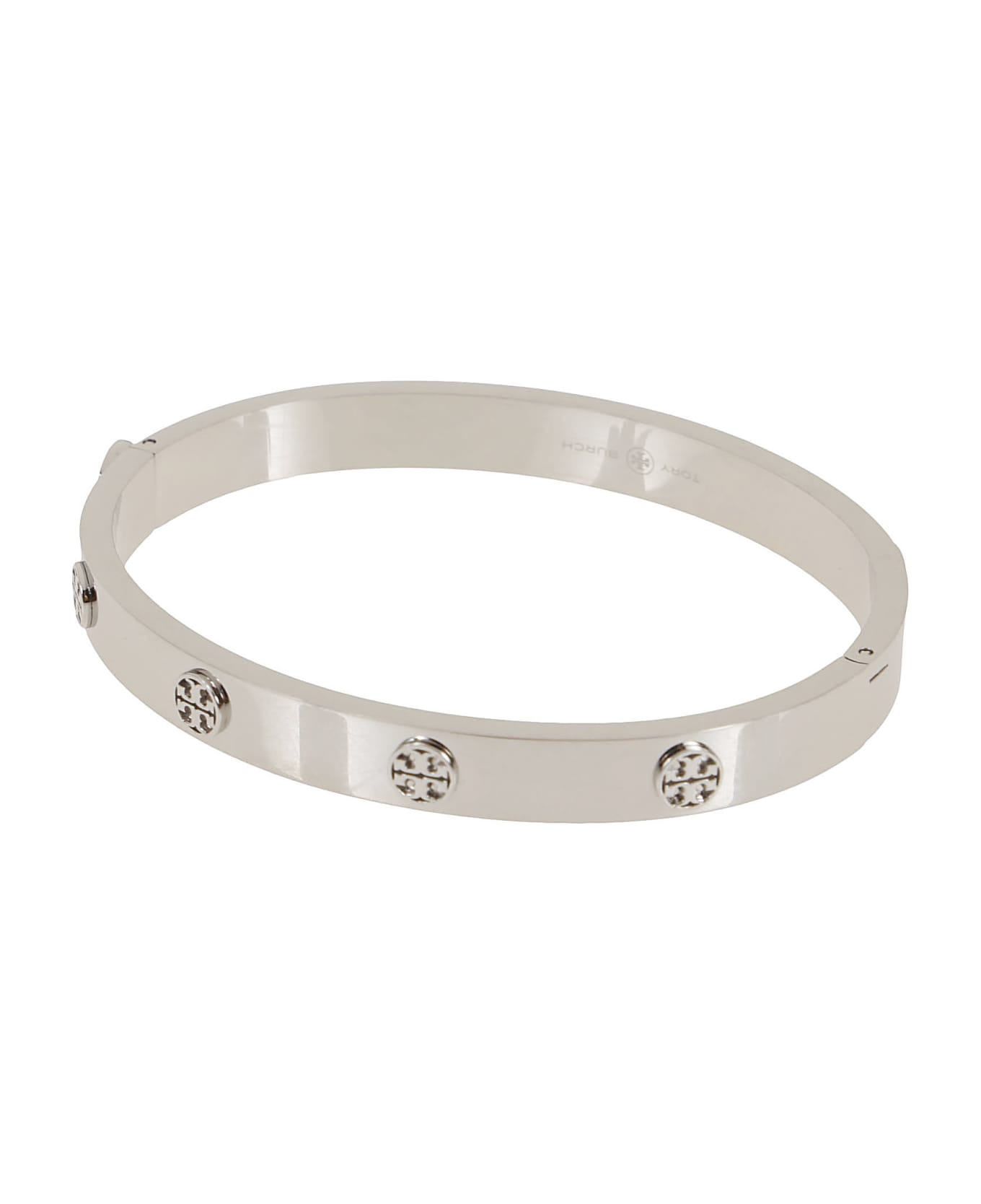 Silver-tone stainless steel polished finish clip-lock fastening engraved logo