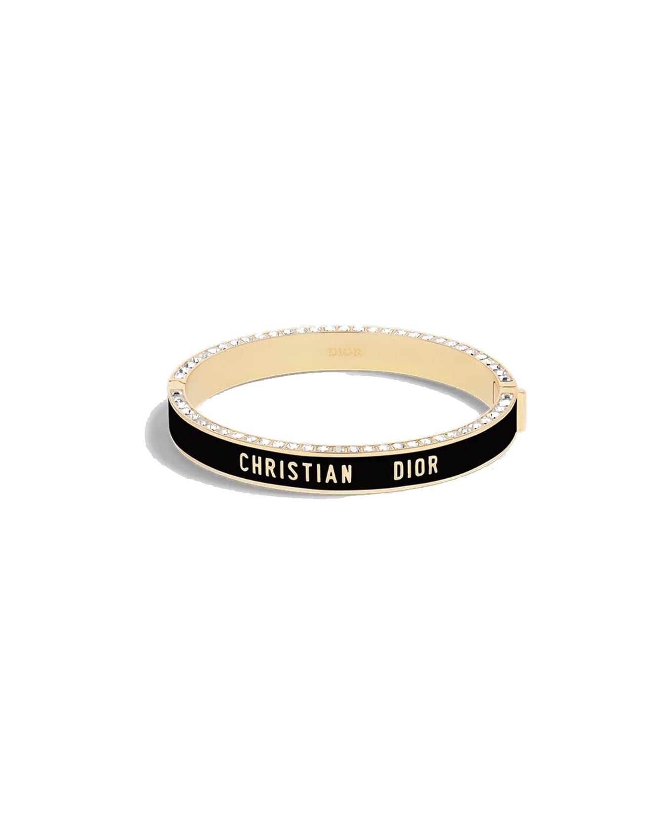 Composition: 100% Metal Gold finish A pavé of white crystals on the edge Christian Dior lettering on black lacquer Width of the bracelet: 0. 7 cm Made in Italy