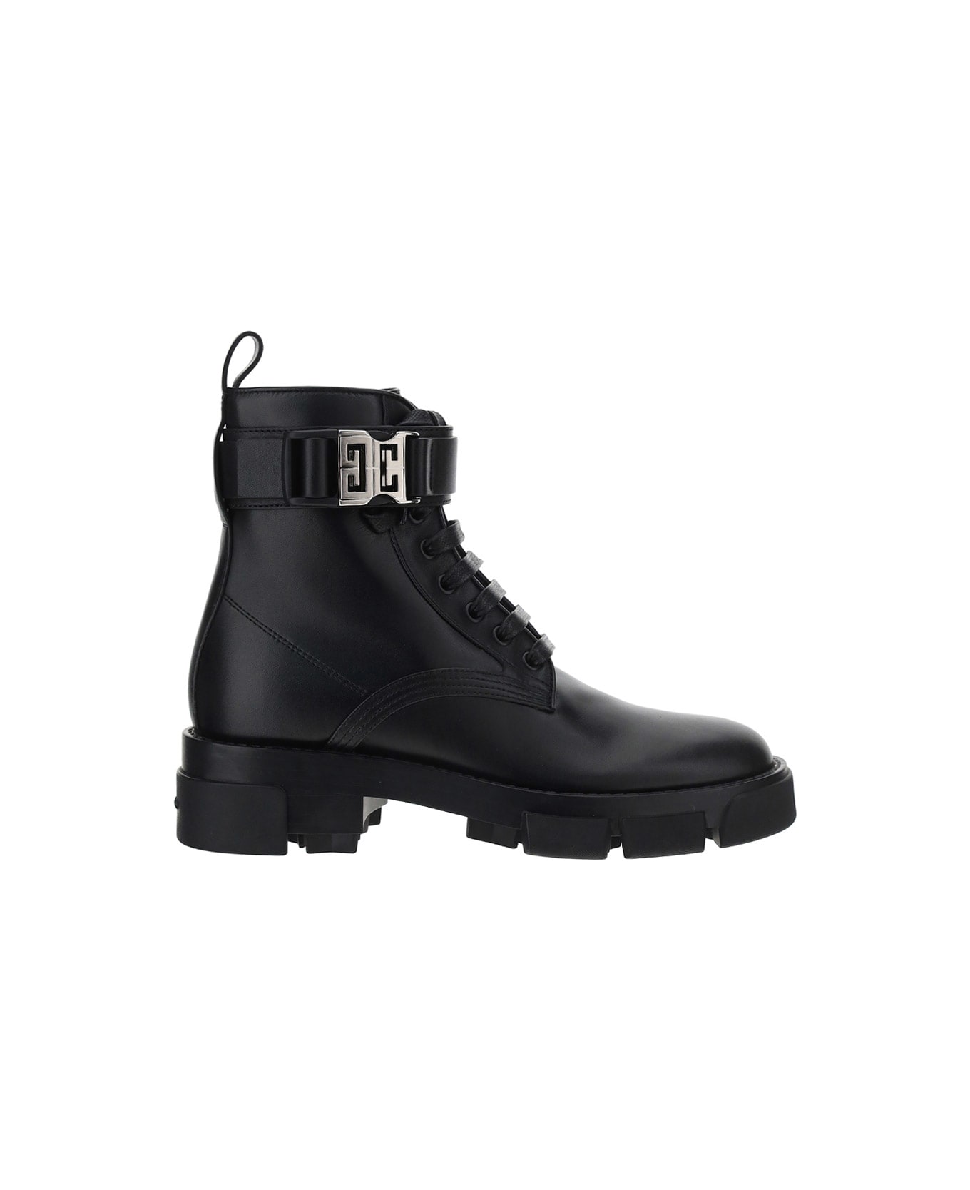 Leather Ankle Bot by Givenchy, buckle on the side, front fastening, tongue on the back, chunky sole. Composition: 100% Calf Leather Bos Taurus, 100% Calf Leather Bos Taurus