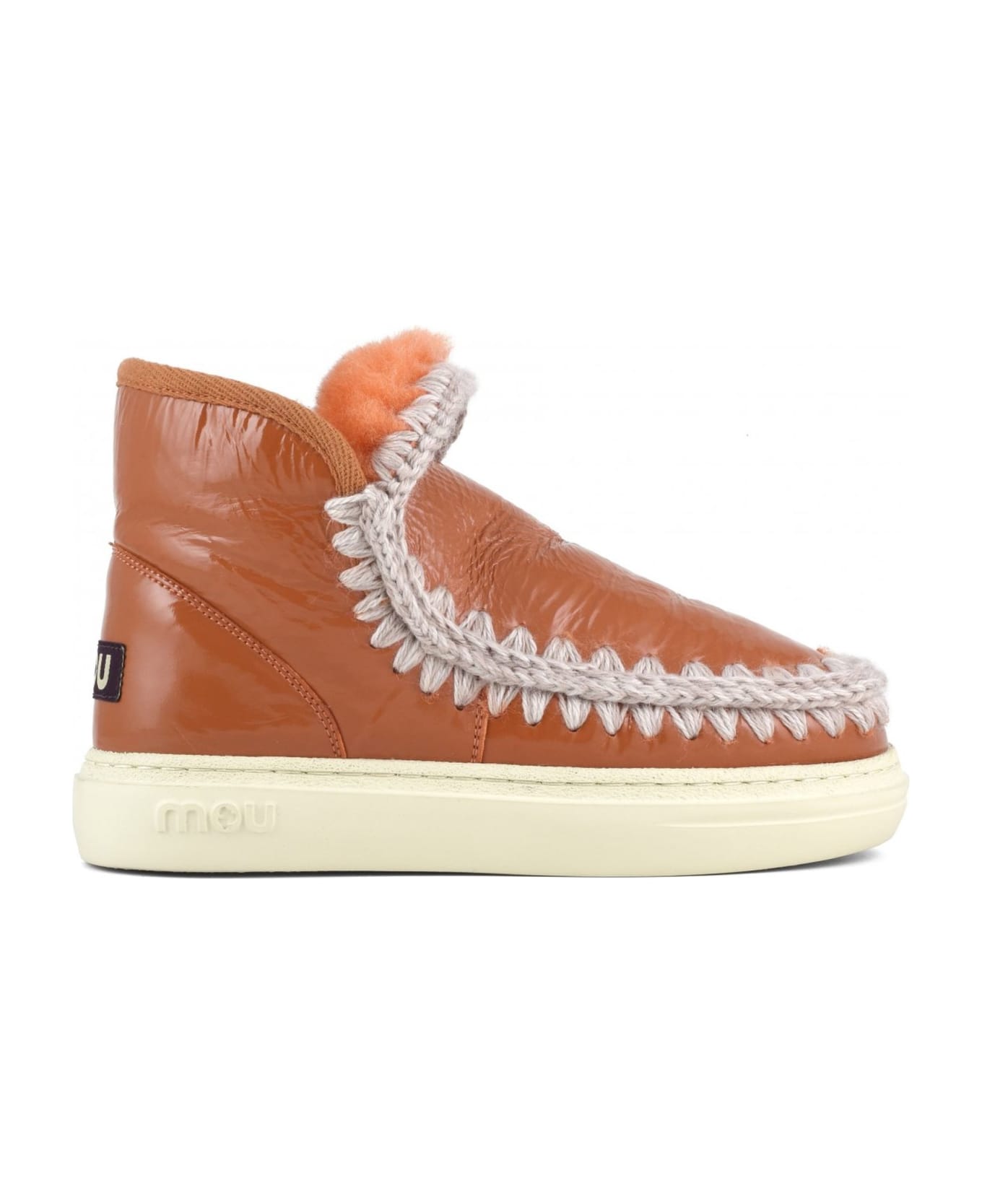 Eskimo sneaker bold with rhinestone logo in orange patent leather, double-face sheepskin with crochet stitch details, supportive heel counter and durable, comfort, height 16cm.