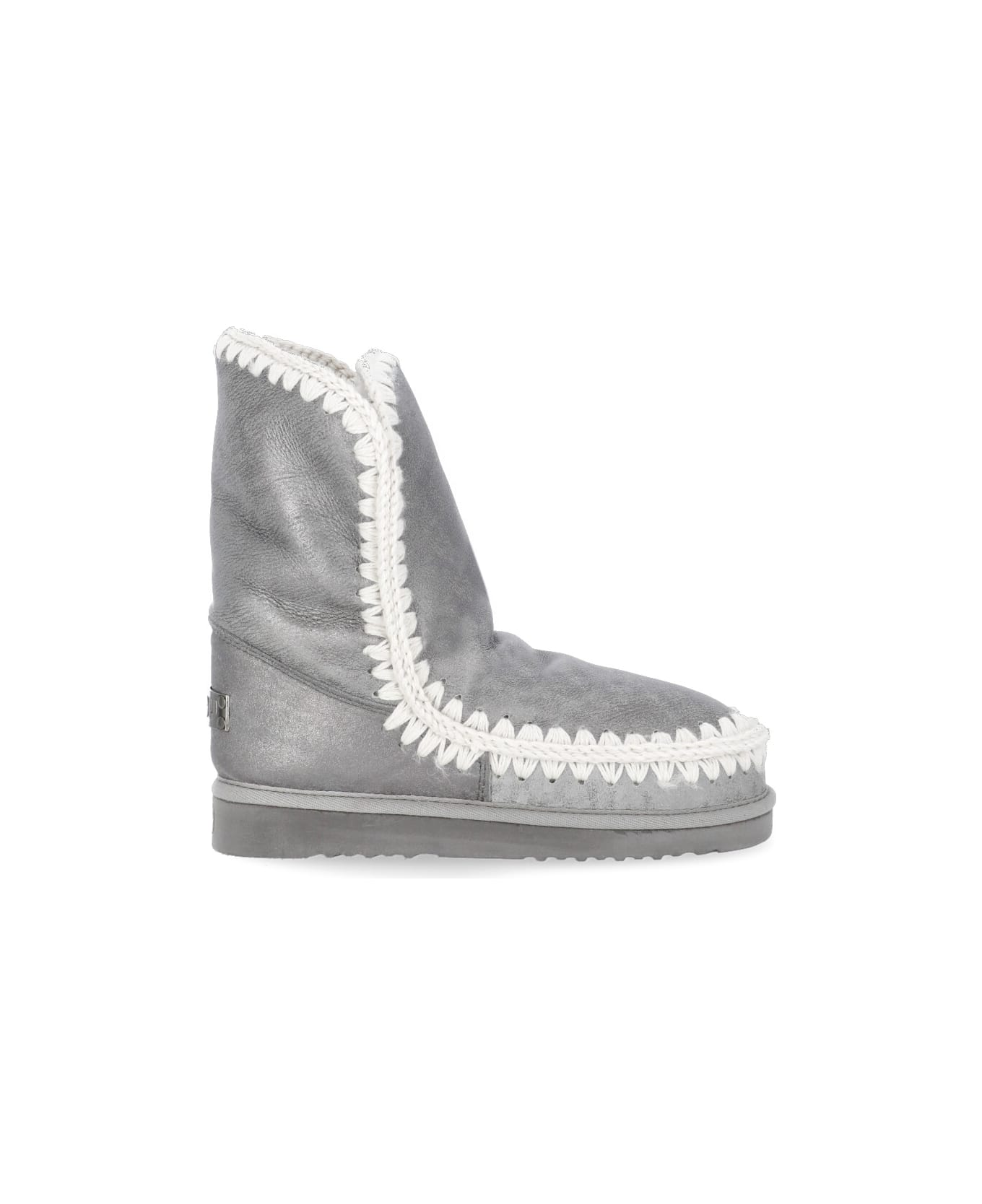 Limited Edition Eskimo 24 Boot from Mou: - Grey Mou shearling boots for woman - Round toe tip - Wool iconic stitching - All-over microglitter and metallic finishes - Rear loged tab - Height: 24 cm - EVA sole