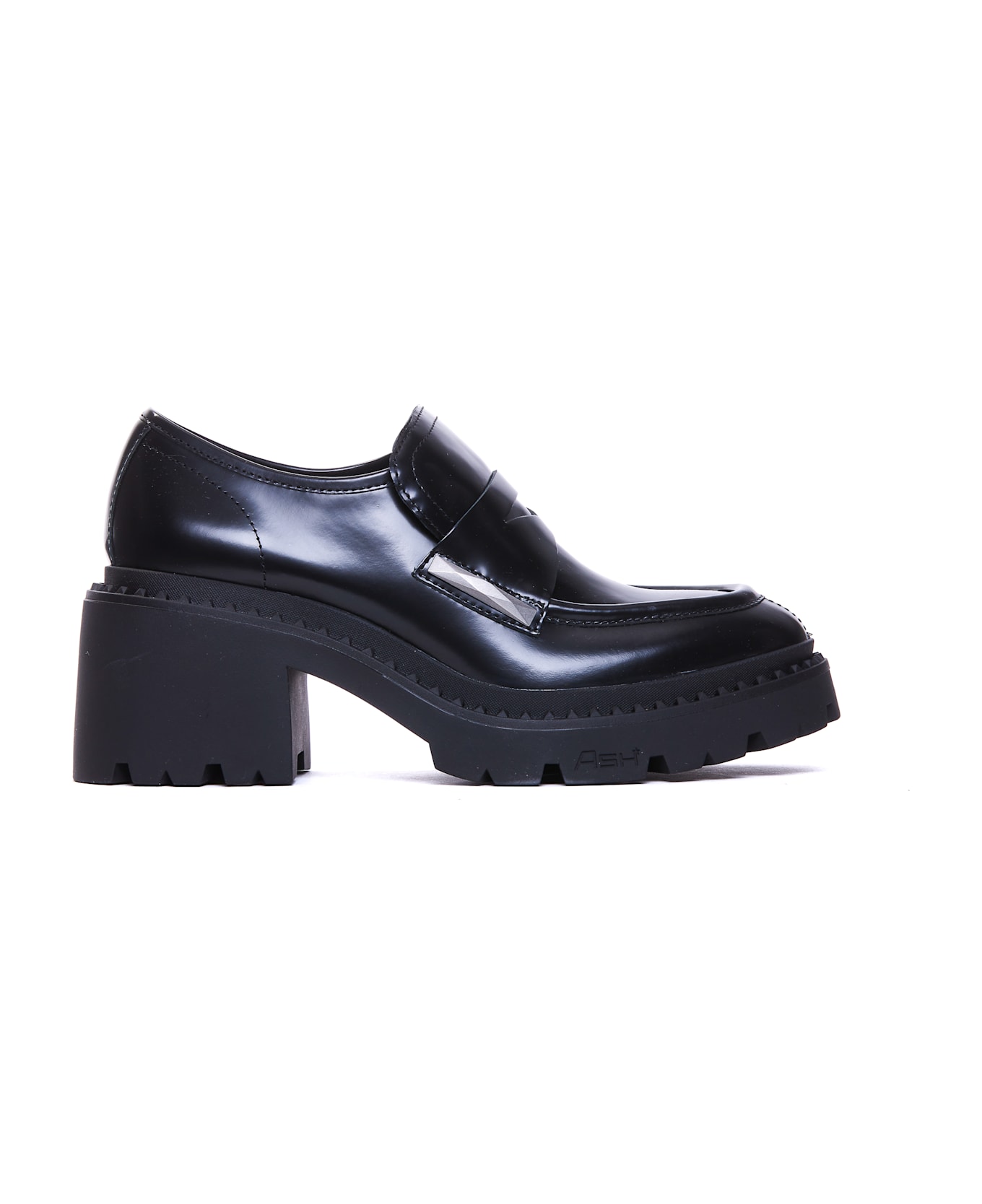 Ash black Norton pump loafers, leather upper and rubber sole, round toe, glossy effect, silver detail
