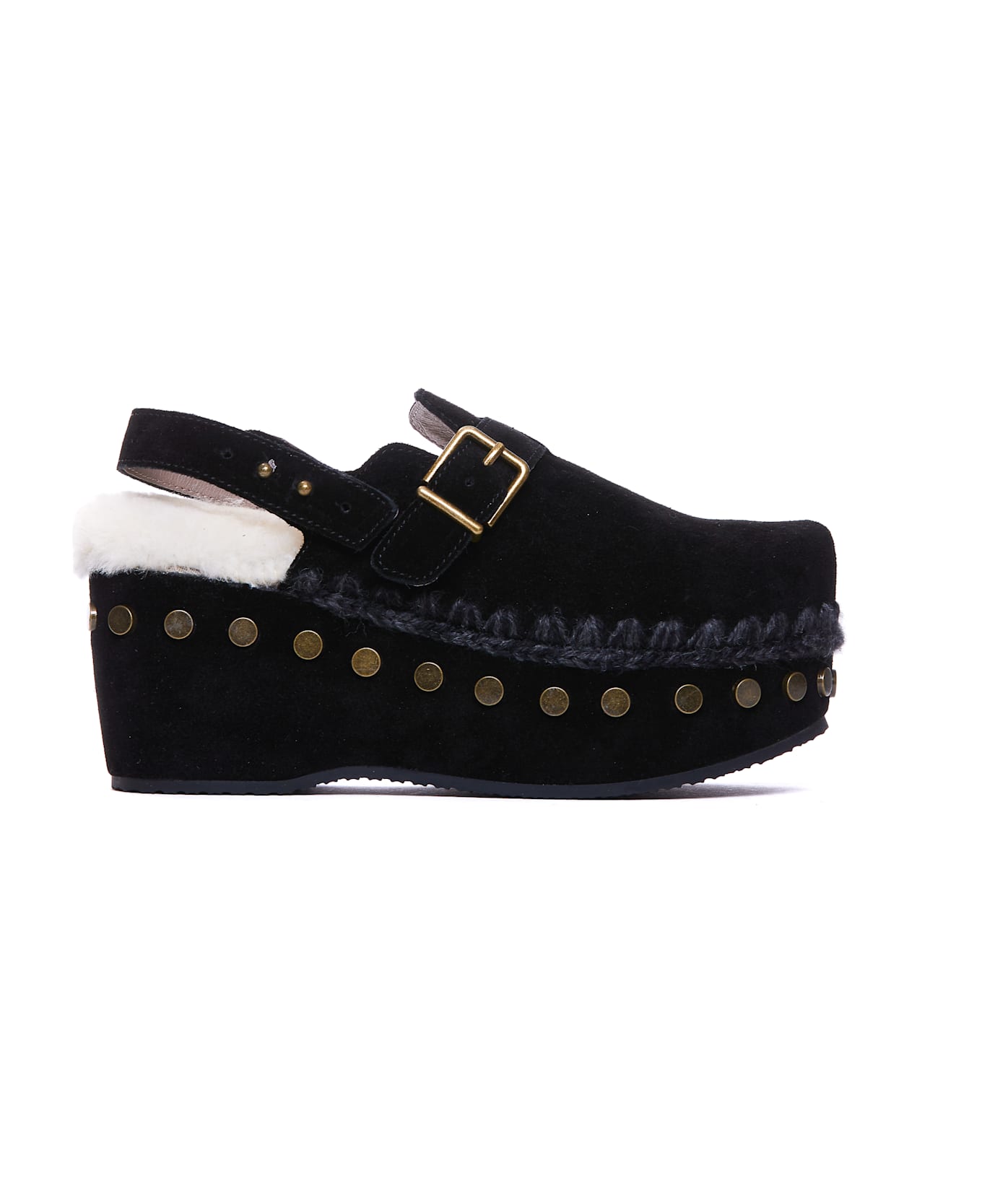 Mou black Clog, round toe, suede upper, platform model, studs detail