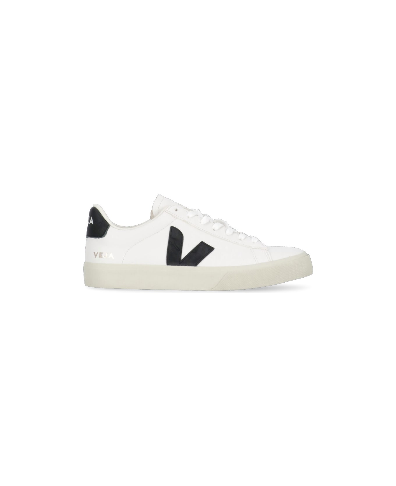 - White Veja leather sneakers for woman - Round toe - Front laces fastening - Contrasting colour upper heel with logo - Side contrasting colour V logo