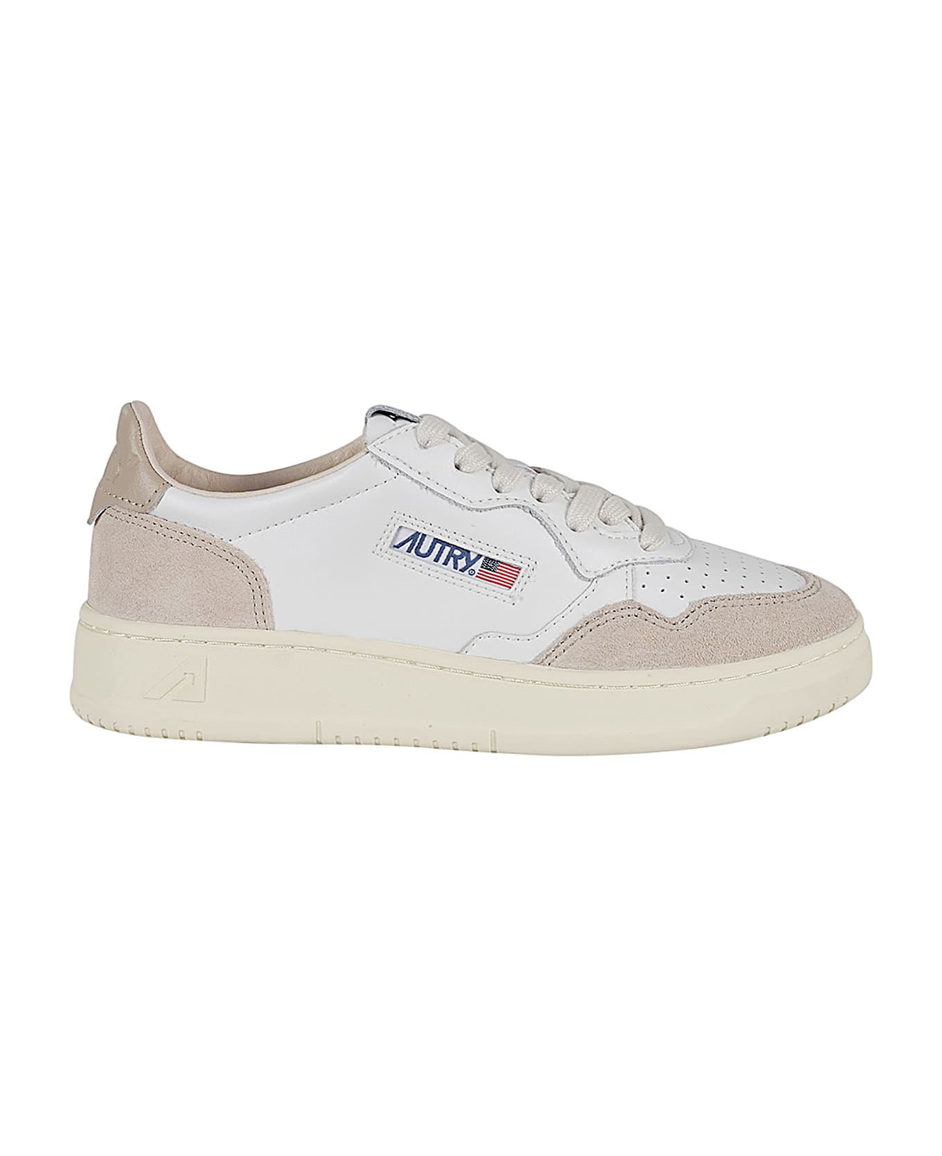 Medalist Low Woman sneaker - Autry - white and beige color - leather upper - rubber sole - round toe - cotton laces - side logo
