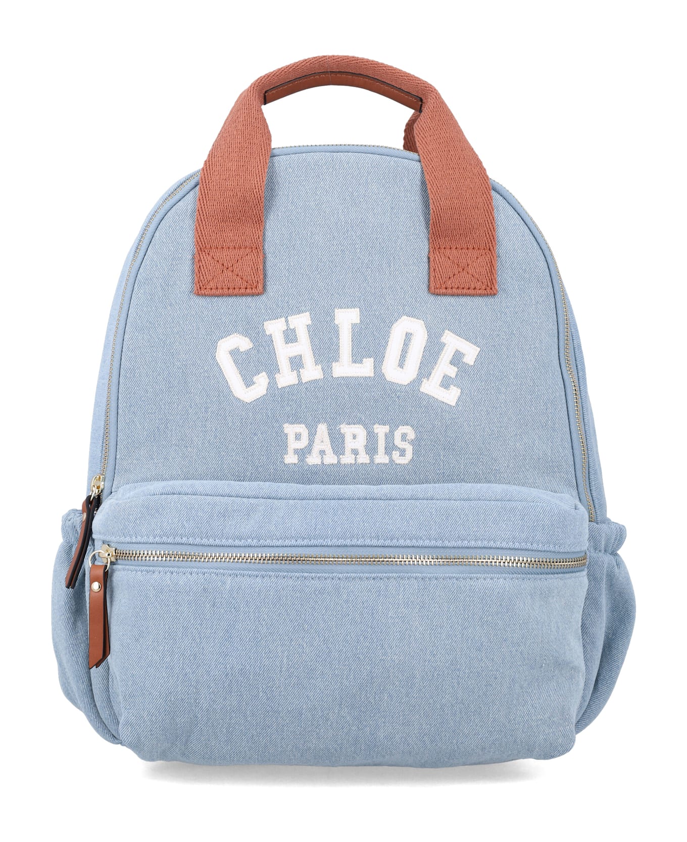Made From Organic Cotton Denim With Grosgrain Handles, The Chloé Kids Backpack Combines Practicality With Style. Featuring Gold-tone Zips, Leather Zip Pullers, A Large Front Pocket, Side Elasticated Pockets, And A Flat Interior Pocket, It s Perfect For Everyday Use While Adding A Chic Designer Touch. 2 Top Handles Zip Closure Large Front Zipped Pocket Elasticated Pockets On Both Sides Adjustable Straps Flat Pocket Inside Chloé Leather Logo Patch Inside Height: 36 Cm Width: 28 Cm Depth: 12 Cm