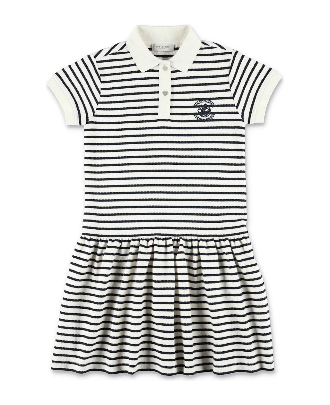 Polo Striped Dress By Golden Goose Kids. Featuring: Cotton Jersey Polo Shirt Collar 2 Button Closure Short Sleeves Ribbed Neck And Cuffs Emrboidered Logo At Chest Gathered Skirt At Waist