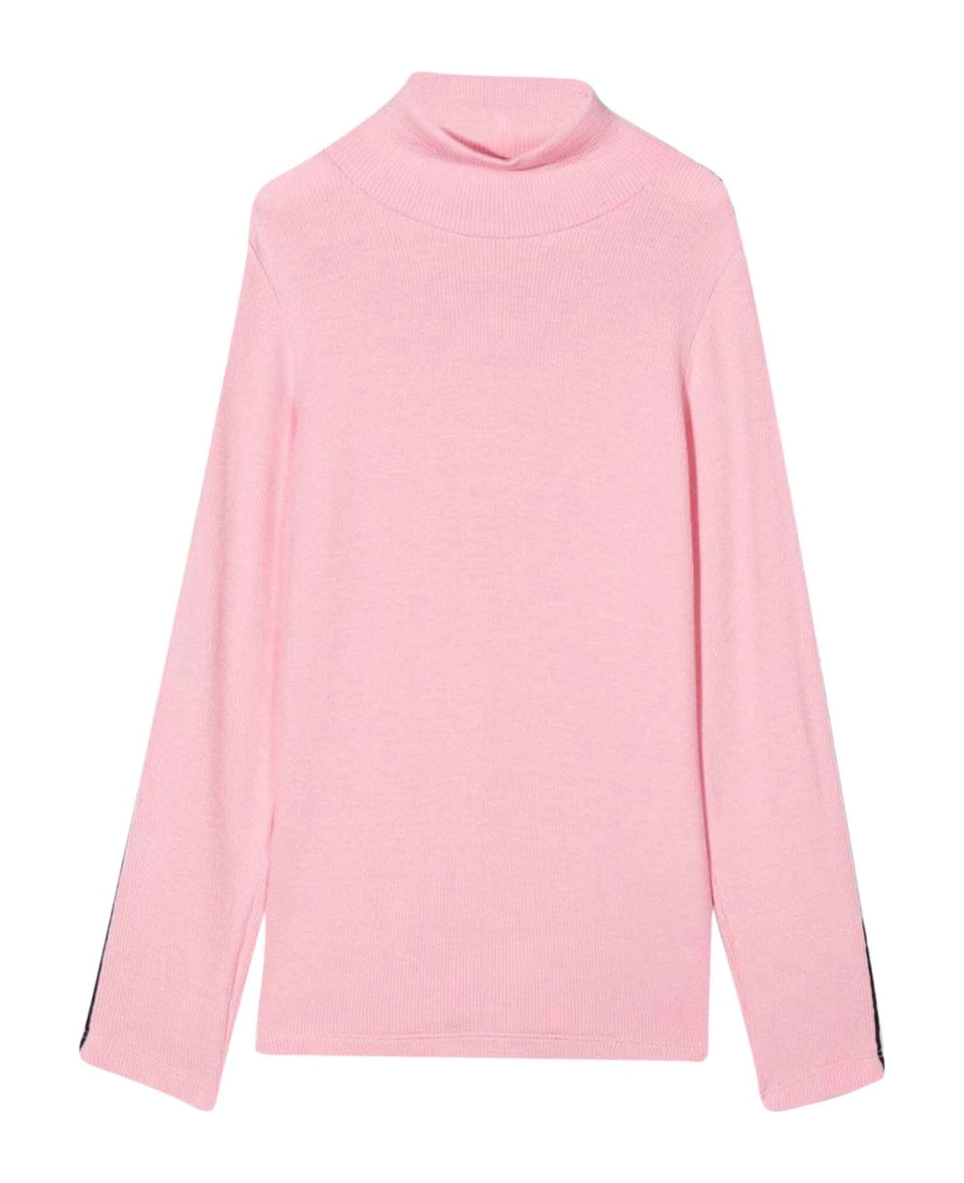 Pink sweatshirt girl. Knitted design, fine knit, mock neck, logo band and long sleeves. Viscose 96%, Spandex / Elastane 4%