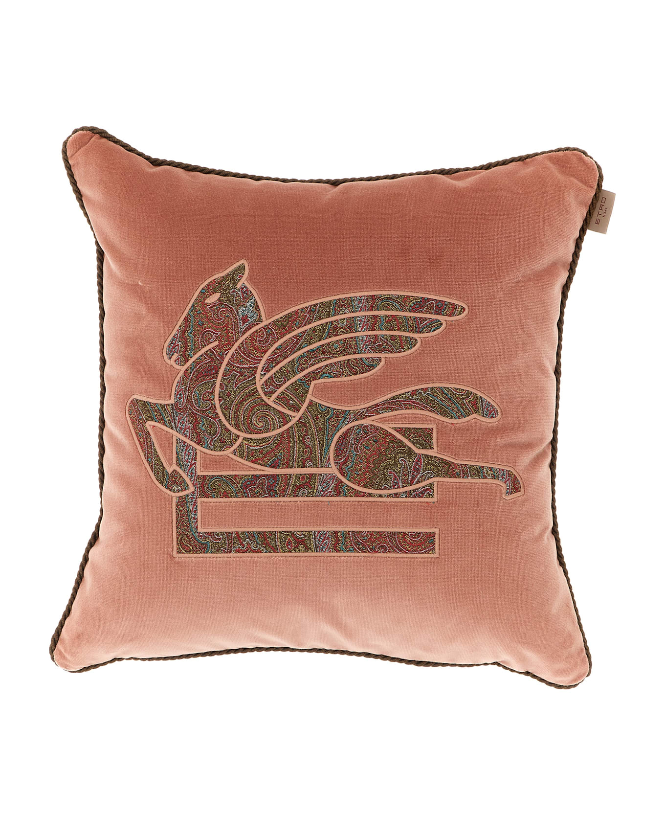 Cotton velvet cushion, logo embroidery and 'Pegaso' in the iconic Paisley jacquard fabric finished with a thread embroidery.