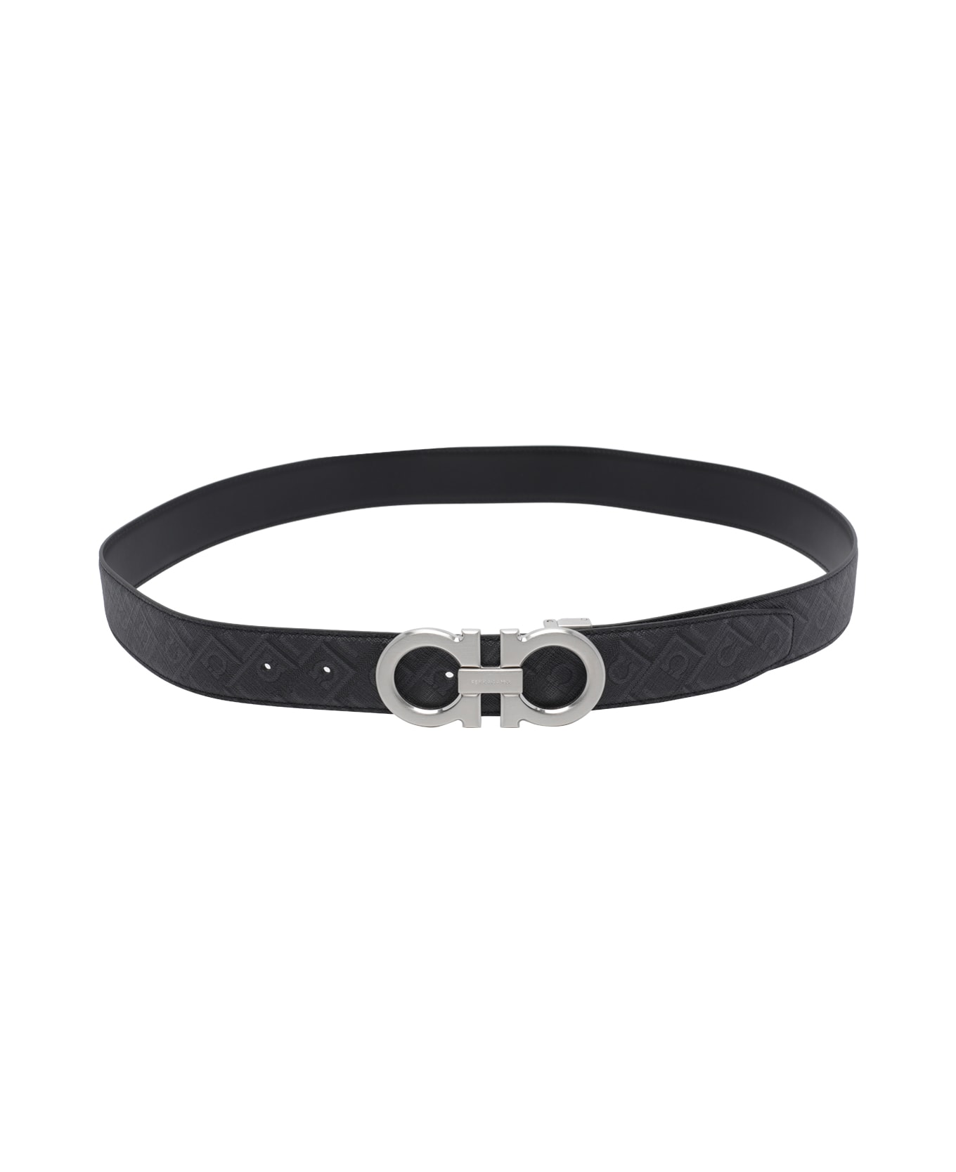 Ferragamo black reversibile Double belt, Gancini logo buckle closure Composition: 100% Calf Leather, 100% Coated Fabric