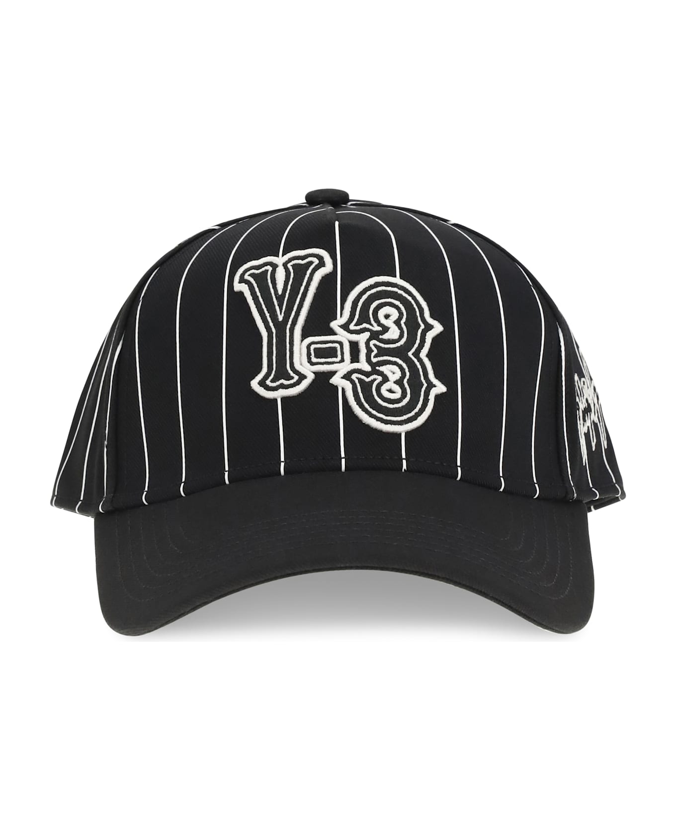 The pinstripe baseball cap by y-3 features a twill construction with a high crown and curved brim. the y-3 logo is embroidered on the front panel, while yohji yamamoto's signature is embroidered on the side panel, adding a distinctive touch. the metal back slider completes the design, offering an additional note of elegance. an accessory that combines sporty style and sophistication.