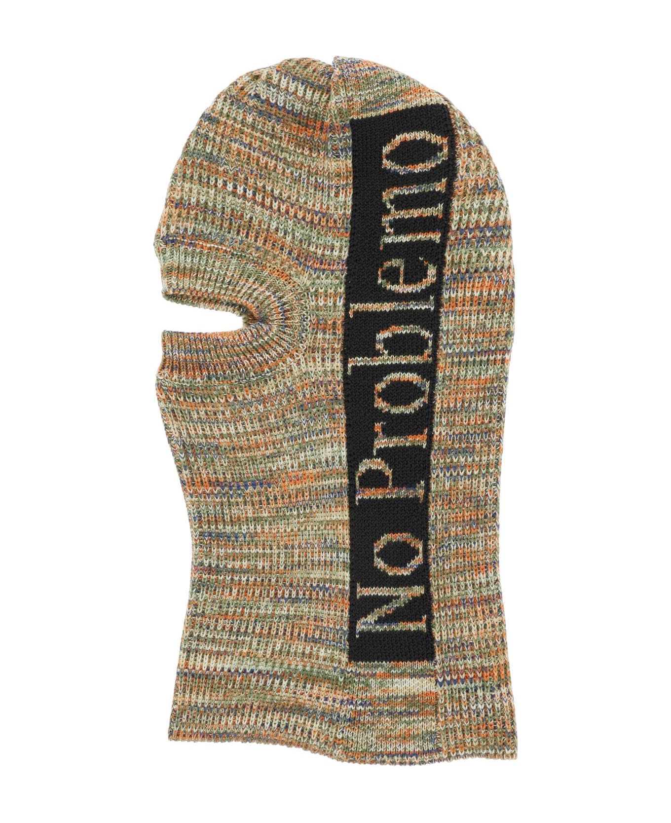 Aries recycled cotton yarn balaclava with contrasting jacquard "NO PROBLEMO" lettering on the side. One size fits all.