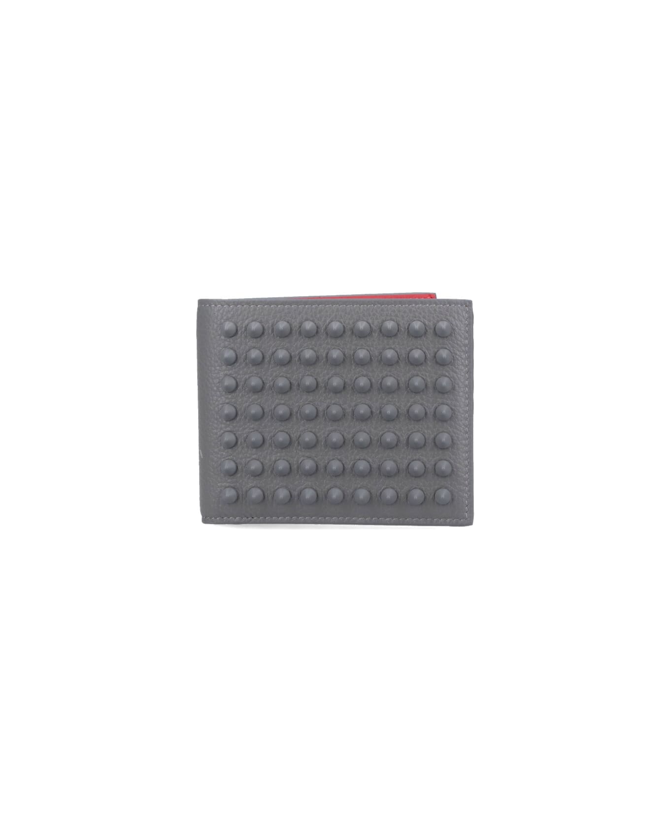 Christian Louboutin bi-fold wallet with 'Funky' studs in grey hammered leather with tonal metal studs on the front, embossed logo on the back, eight inner card slots, four inner flat pockets, an inner bill compartment.