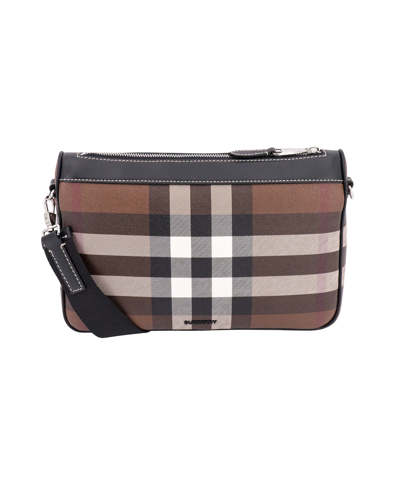 "Coated canvas shoulder bag with Burberry Check motif - Closure With Zip - Removable And Adjustable Fabric Shoulder Strap - External Pockets - Lined - 55% Cotton 45% Polyurethane"