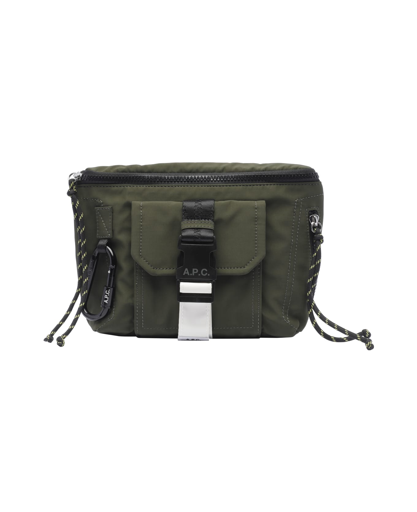 A. P. C. Banane Trek kaki fonce bag, zip closure, one pocket with inner zip, 5 slot, one external pocket with buckle, one external zipped pocket, adjustable shoulder strap Composition: 100% Polyamide