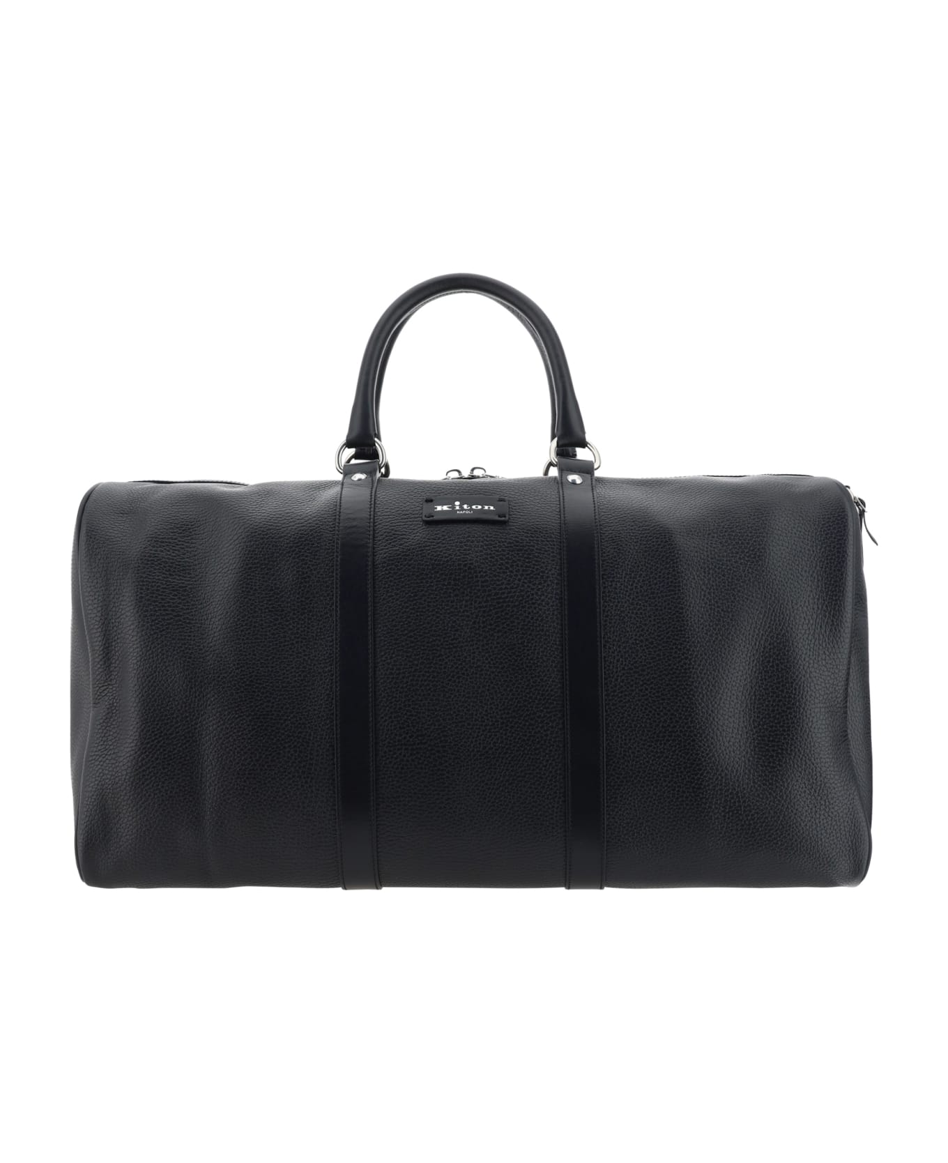 Calfskin travel bag by kiton, double rigid leather handles, top zipper closure, brand signature patch applied on front, adjustable and removable flat shoulder strap, single interior compartment, interior slit pocket. Composition: 100% % Calf Leather Bos Taurus
